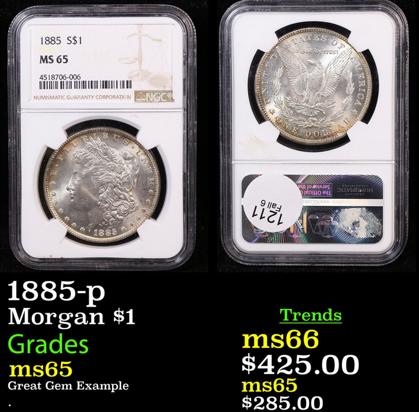 NGC 1885-p Morgan Dollar $1 Graded ms65 By NGC.
