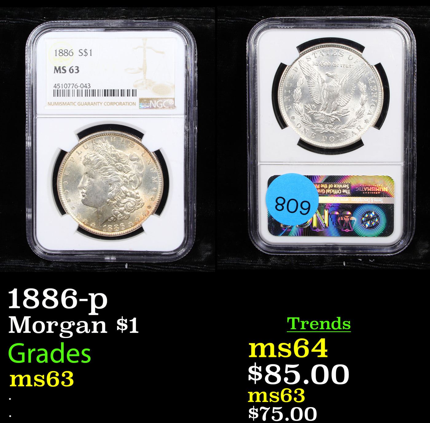 NGC 1886-p Morgan Dollar $1 Graded ms63 By NGC.
