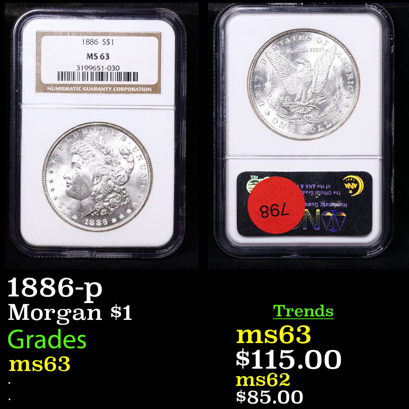 NGC 1886-p Morgan Dollar $1 Graded ms63 By NGC.