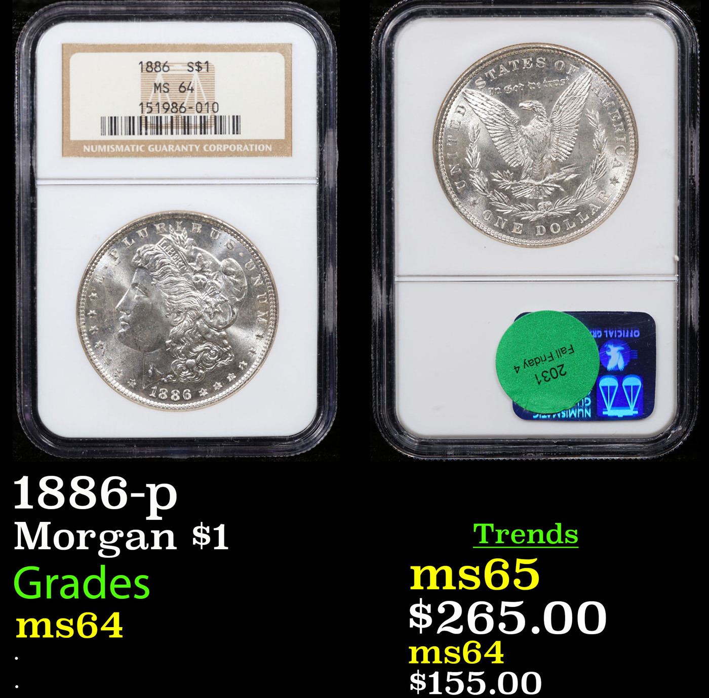 NGC 1886-p Morgan Dollar $1 Graded ms64 By NGC.