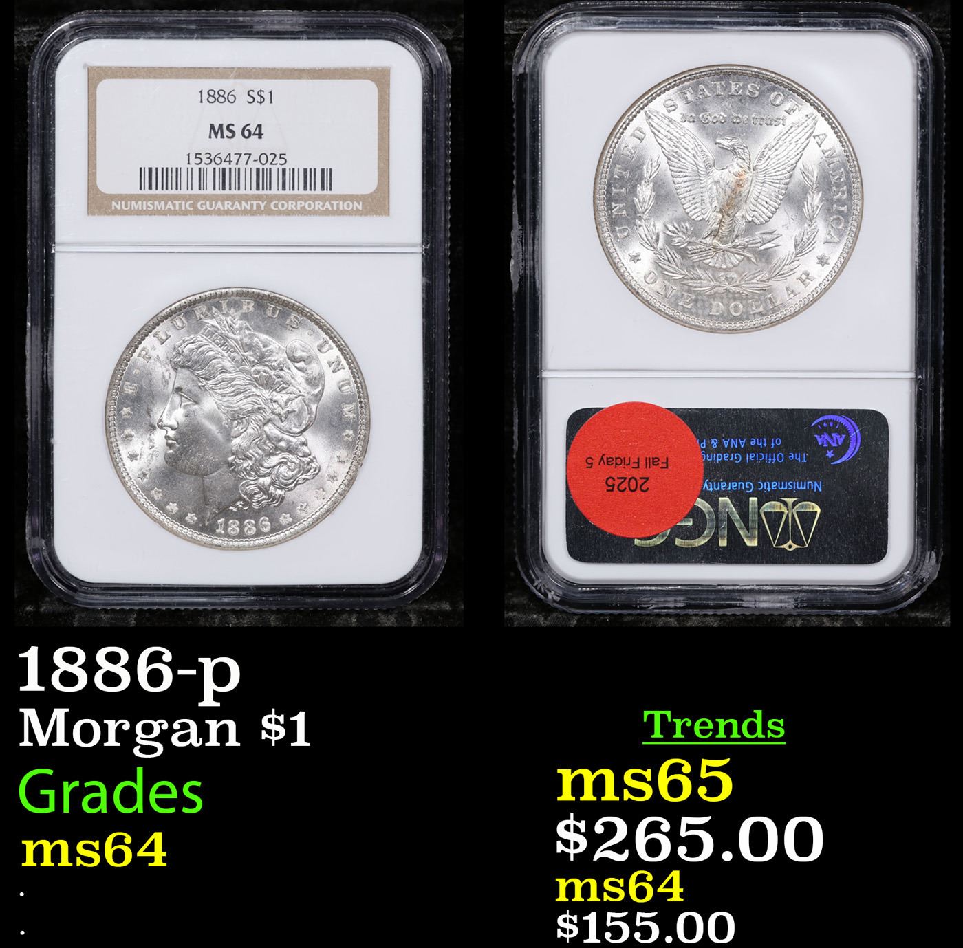 NGC 1886-p Morgan Dollar $1 Graded ms64 By NGC.