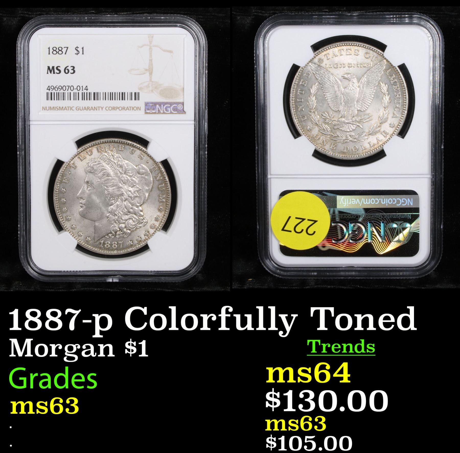 NGC 1887-p Colorfully Toned Morgan Dollar $1 Graded ms63 By NGC.