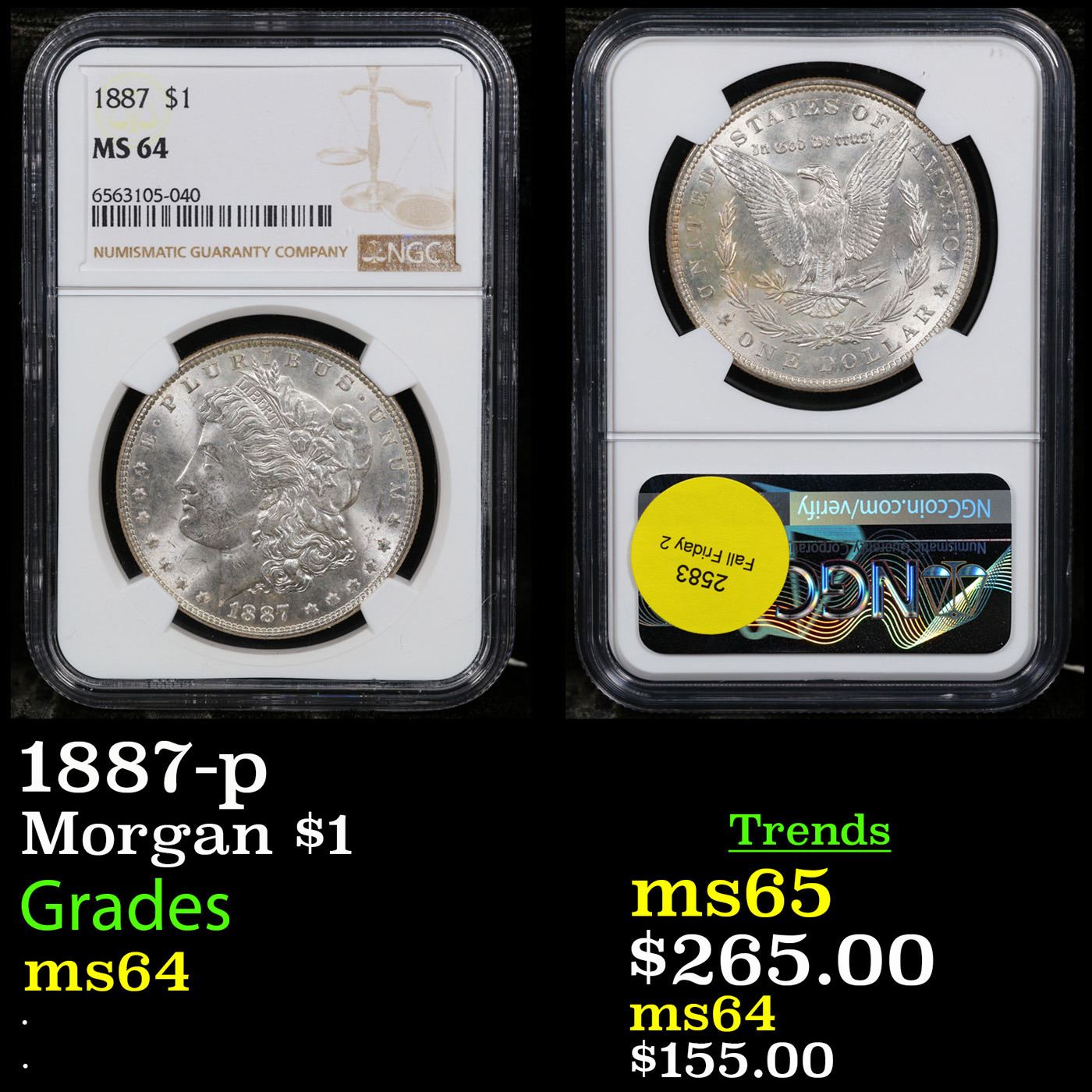 NGC 1887-p Morgan Dollar $1 Graded ms64 By NGC.