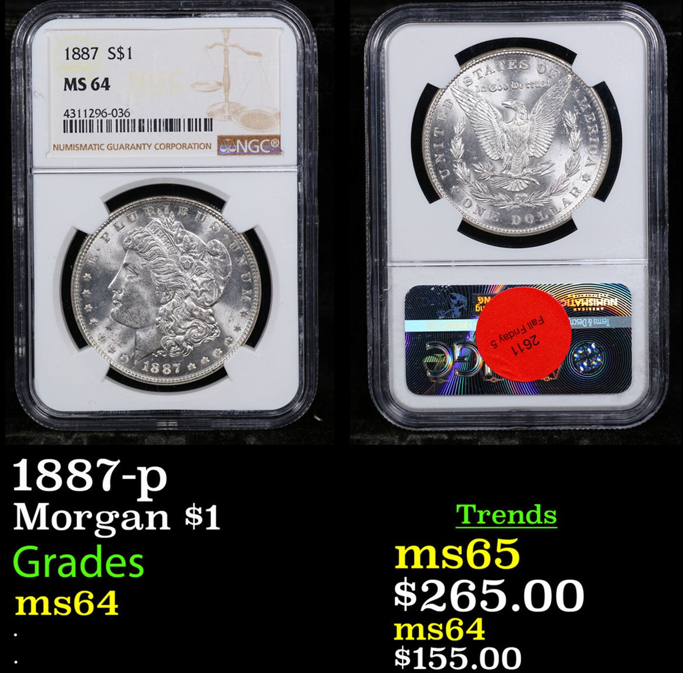 NGC 1887-p Morgan Dollar $1 Graded ms64 By NGC.