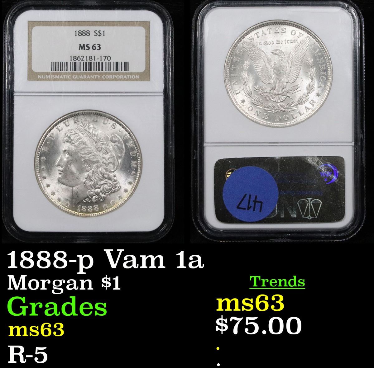 NGC 1888-p Vam 1a Morgan Dollar $1 Graded ms63 By NGC.