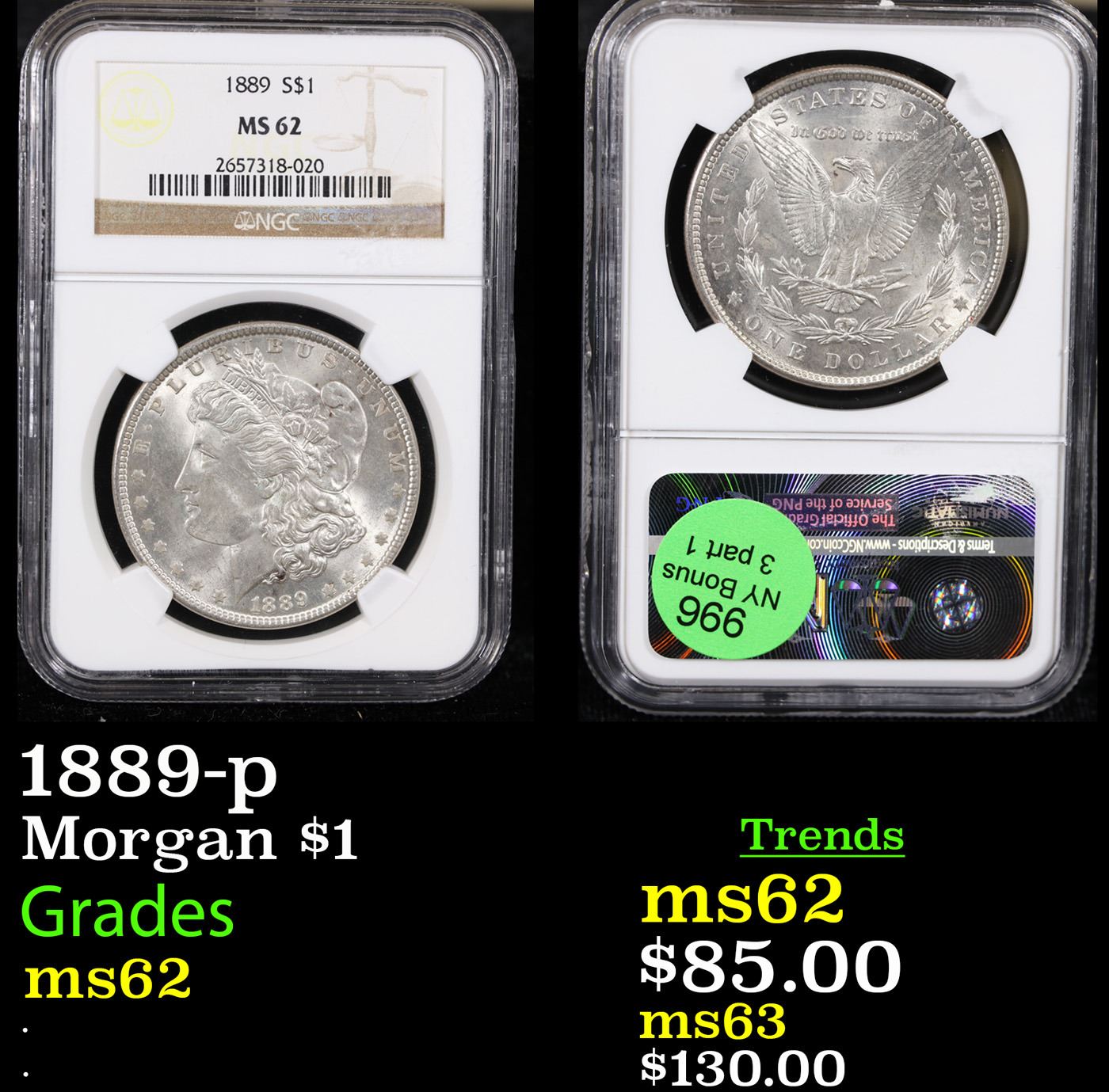 NGC 1889-p Morgan Dollar $1 Graded ms62 By NGC.
