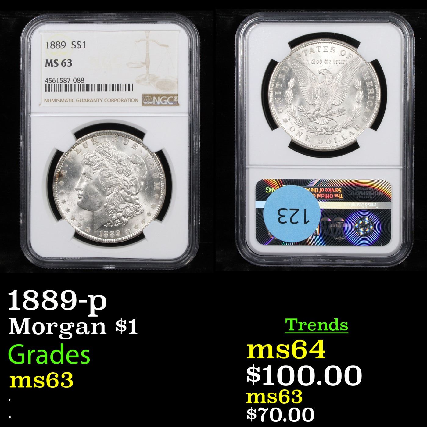 NGC 1889-p Morgan Dollar $1 Graded ms63 By NGC.