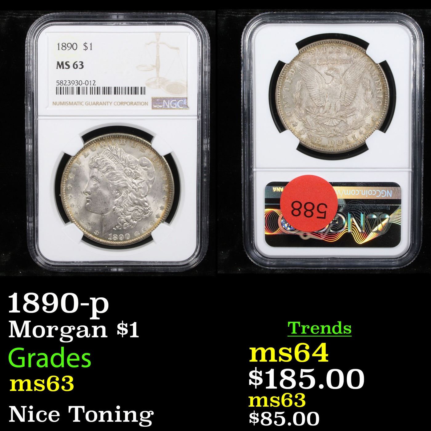 NGC 1890-p Morgan Dollar $1 Graded ms63 By NGC.