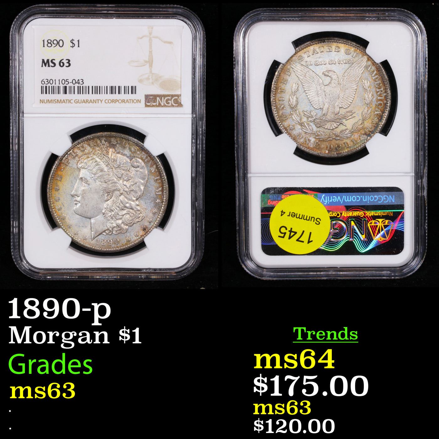 NGC 1890-p Morgan Dollar $1 Graded ms63 By NGC.