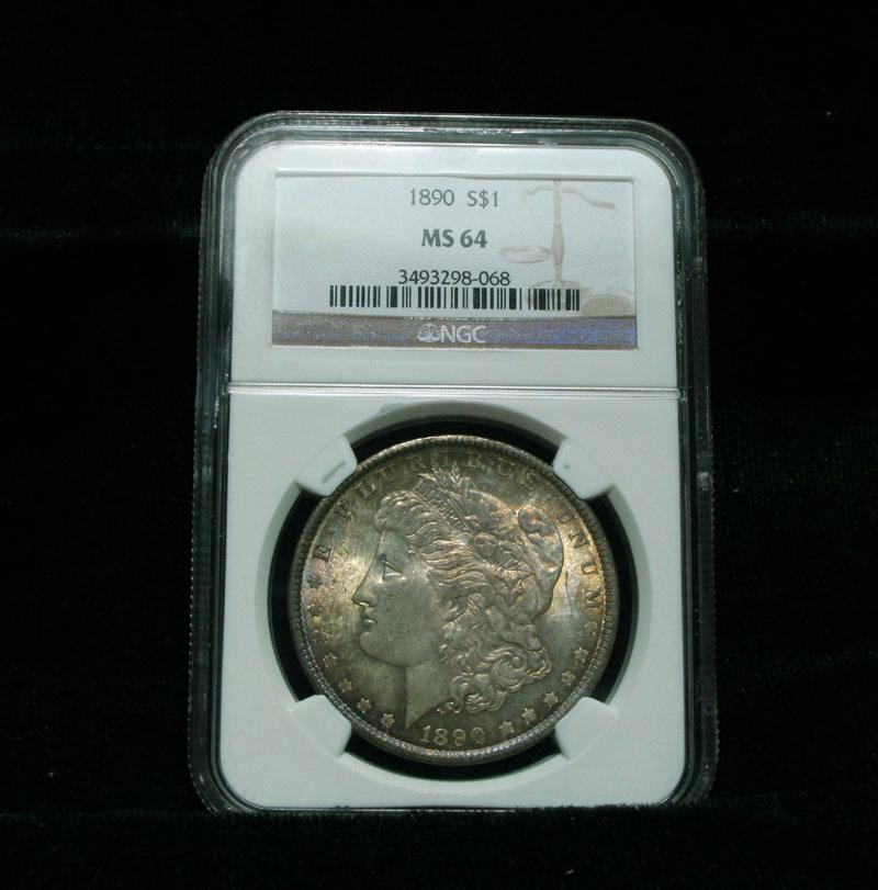 A really PQ example of a beautifully toned Morgan Dollar. Gold Toned, Great Luster, Virtually mark free. a Definite Potential for an upgrade on crossover grading to PCGS, or resend to NGC. A real PQ coin, I think its definitely GEM. Graded by one of America's top and harshest grading companies. NGC is noted for grading very harshly. Coin World's Coin Values lists ms64 at $150 and ms65 at $2,500. The Wholesale Greysheet lists ms64 at $130+ and ms65 at $2,150+. Estimated Value $400