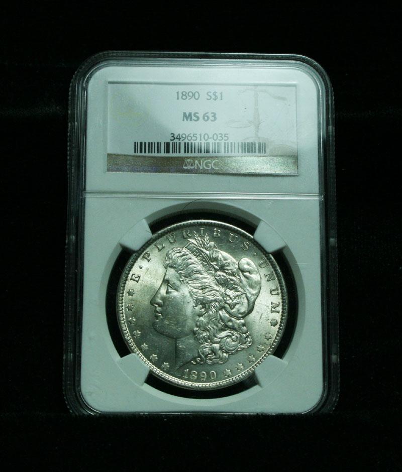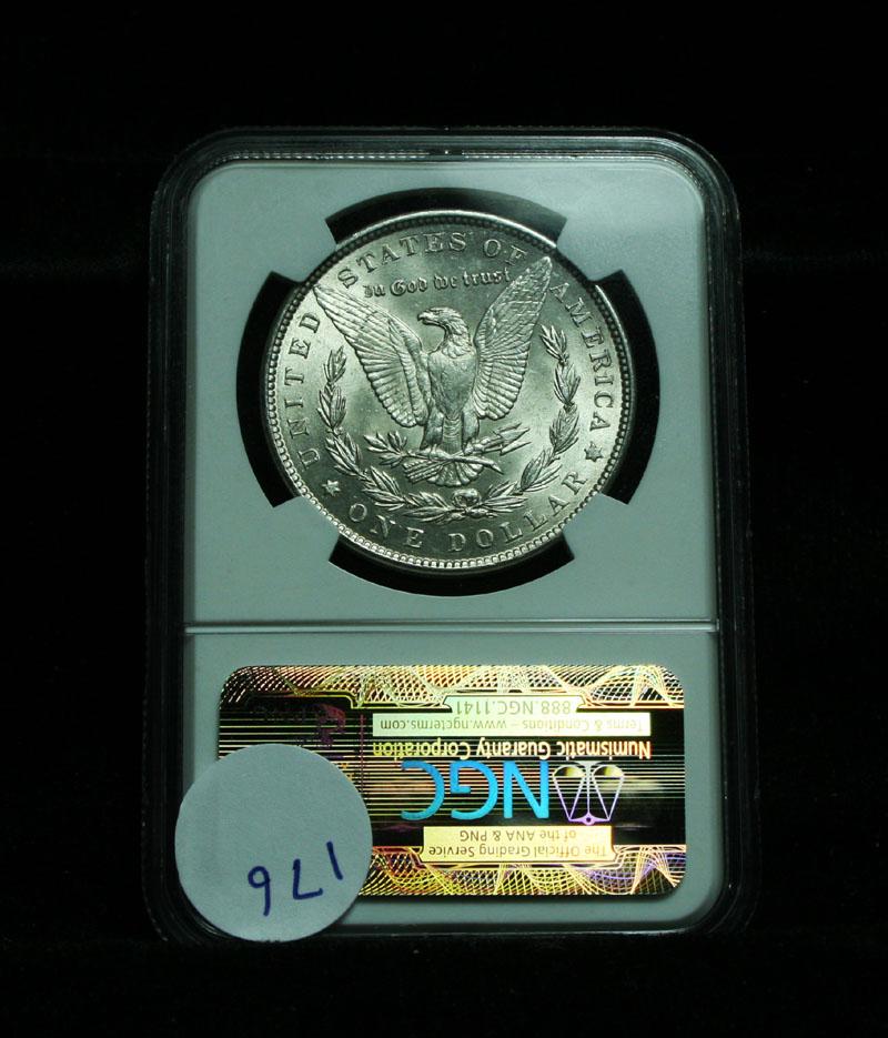 A really PQ example of a blast white Morgan Dollar. Graded by one of America's top and harshest grading companies. The Wholesale Greysheet lists ms63 at $65+ and ms64 at $130+ and ms65 at $2,150+. Estimated Value $100