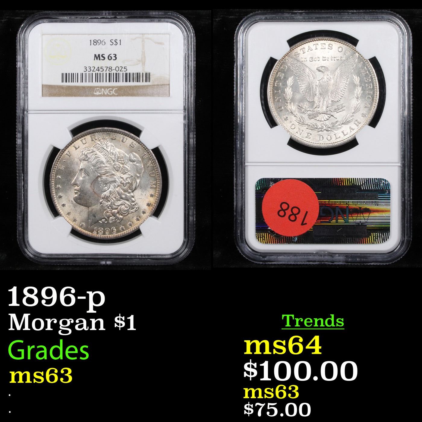 NGC 1896-p Morgan Dollar $1 Graded ms63 By NGC.