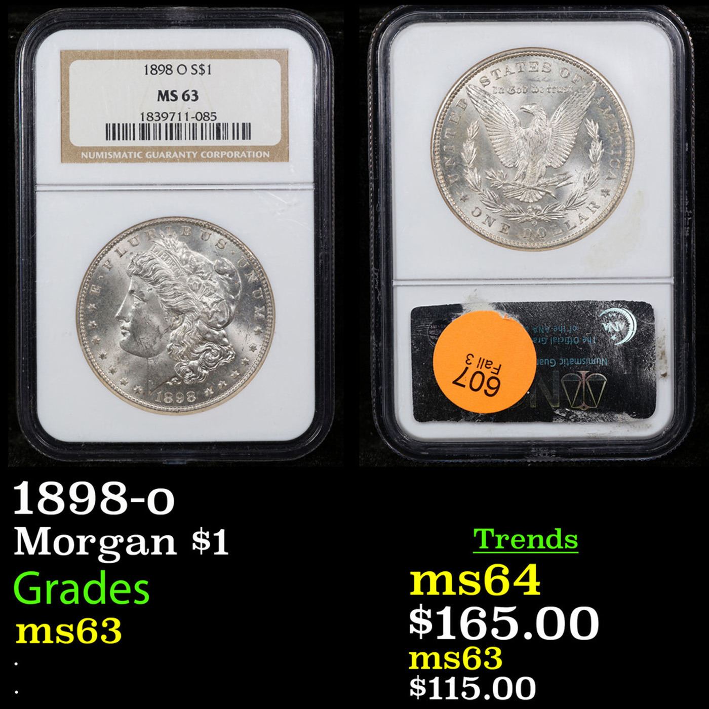 NGC 1898-o Morgan Dollar $1 Graded ms63 BY NGC.