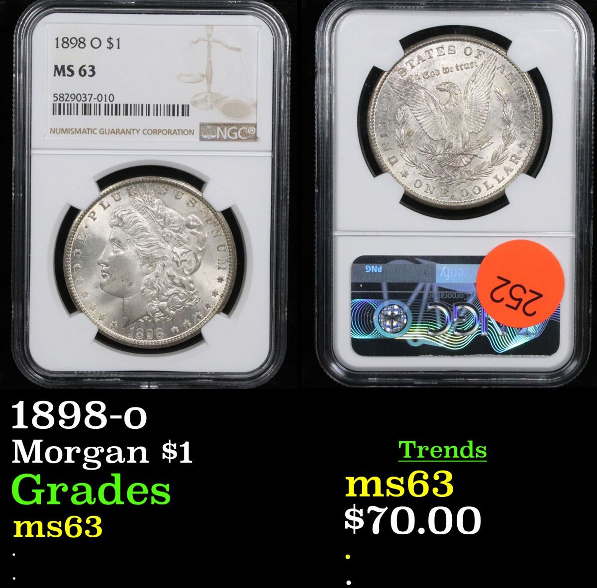NGC 1898-o Morgan Dollar $1 Graded ms63 By NGC.