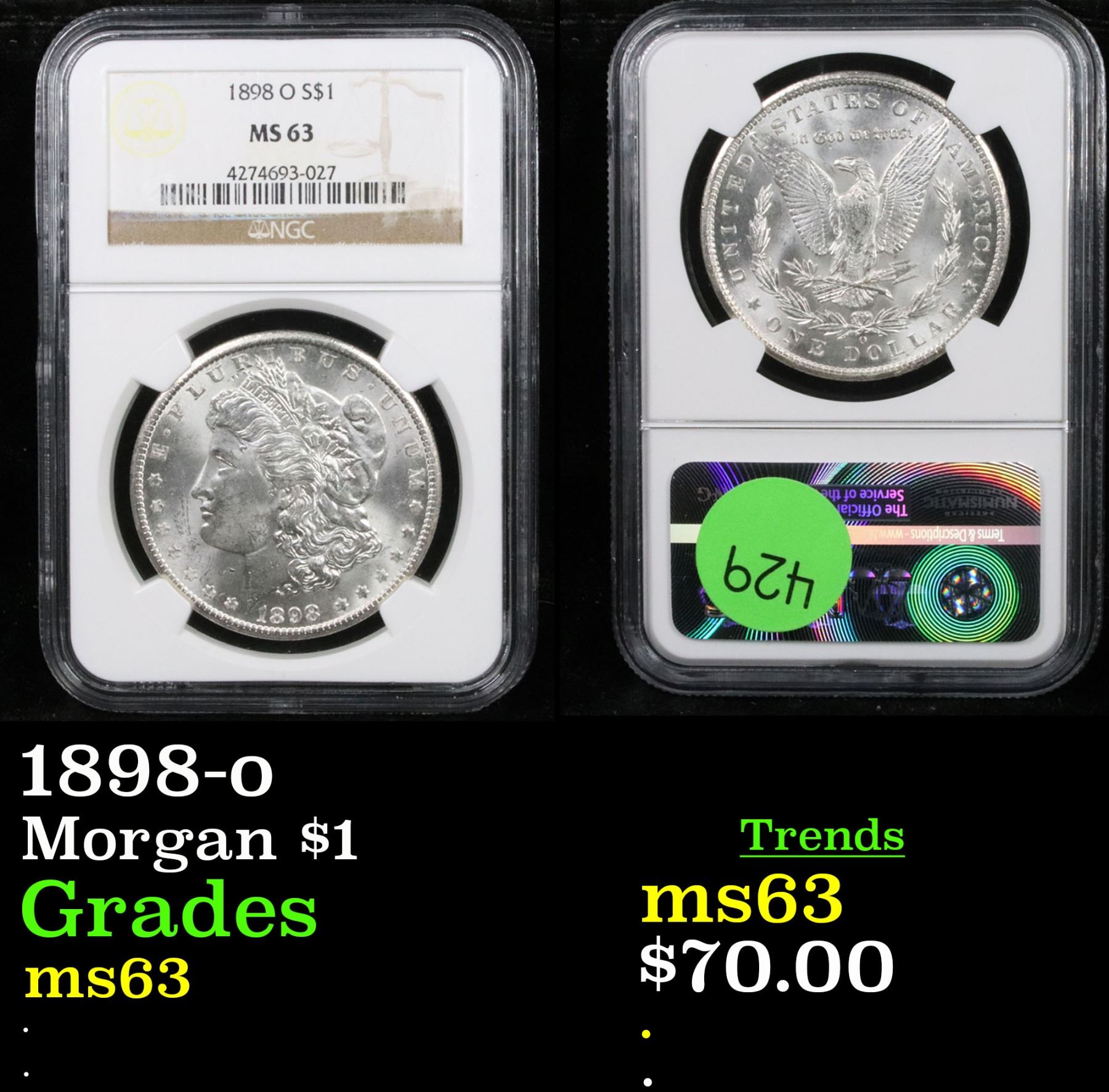 NGC 1898-o Morgan Dollar $1 Graded ms63 By NGC.
