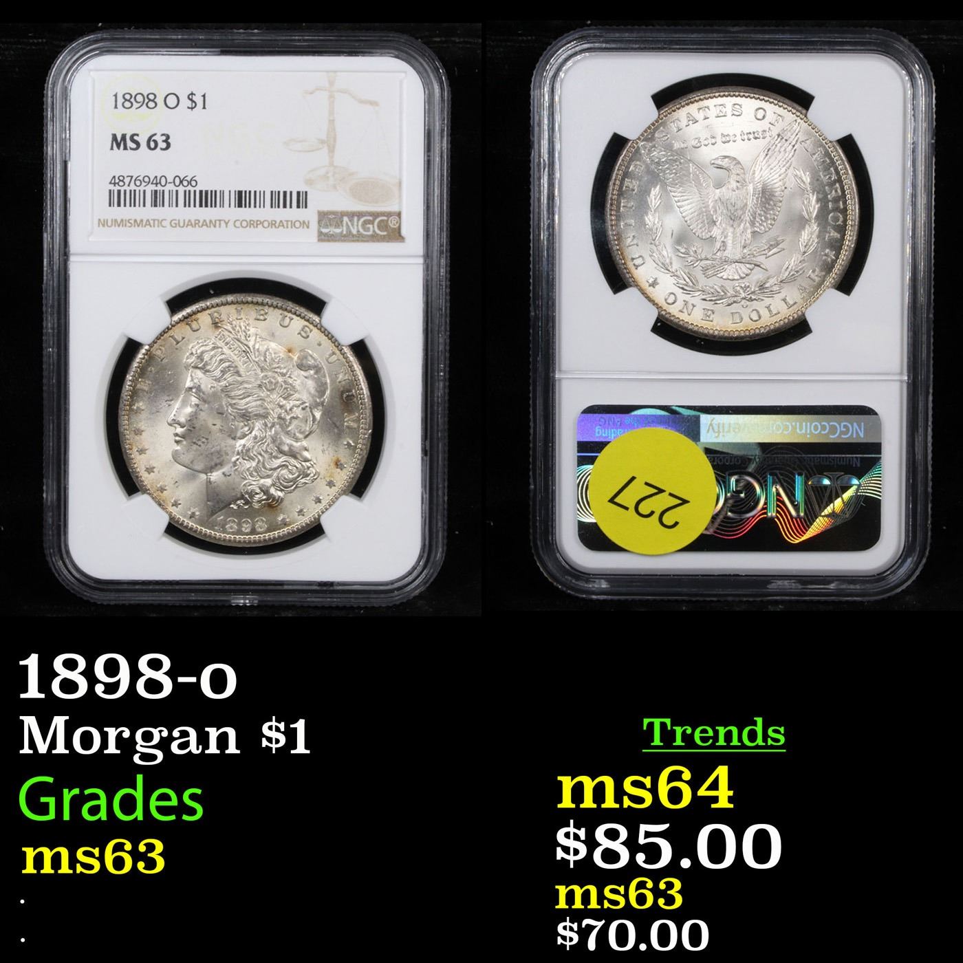 NGC 1898-o Morgan Dollar $1 Graded ms63 By NGC.