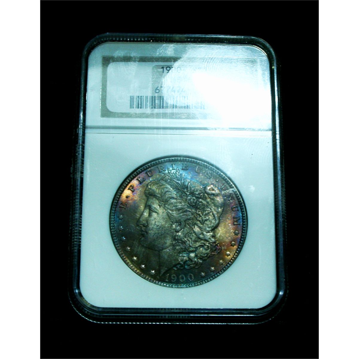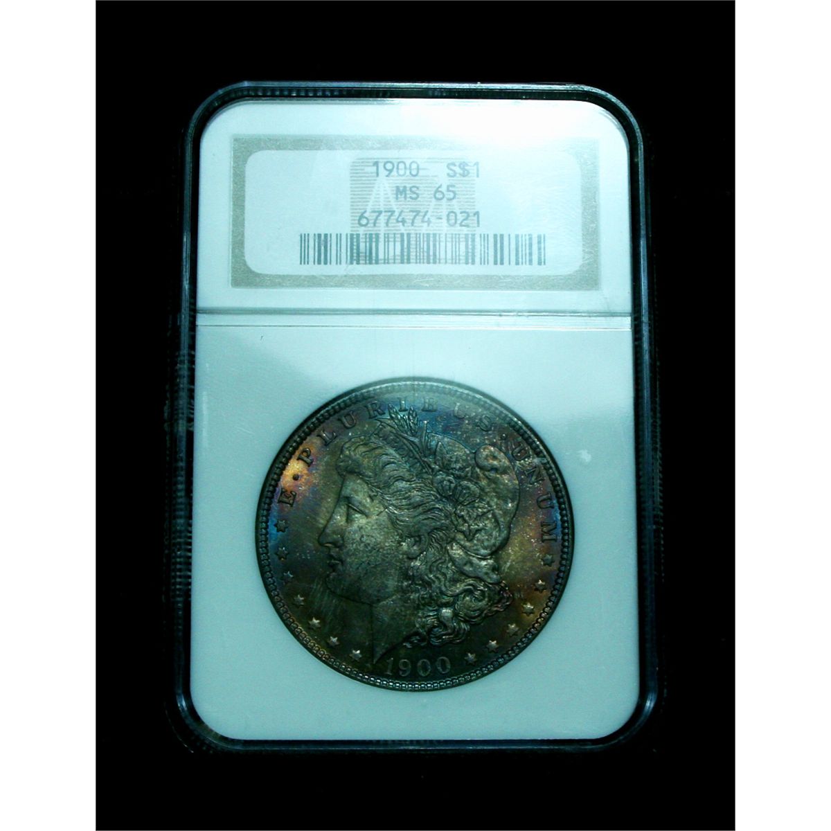 Amazing toning on the obverse. Colors of blue, green, purple, bronze and red. The revese is blast white but for a touch of golden Rim toning. Great eye appeal. I can't say enough about the color. Graded by NGC, One of America's Top 2 grading companies. NGC is a very stringent and harsher grader. NGC's Price Guide lists an ms65 at $250. Estimated Value $250.