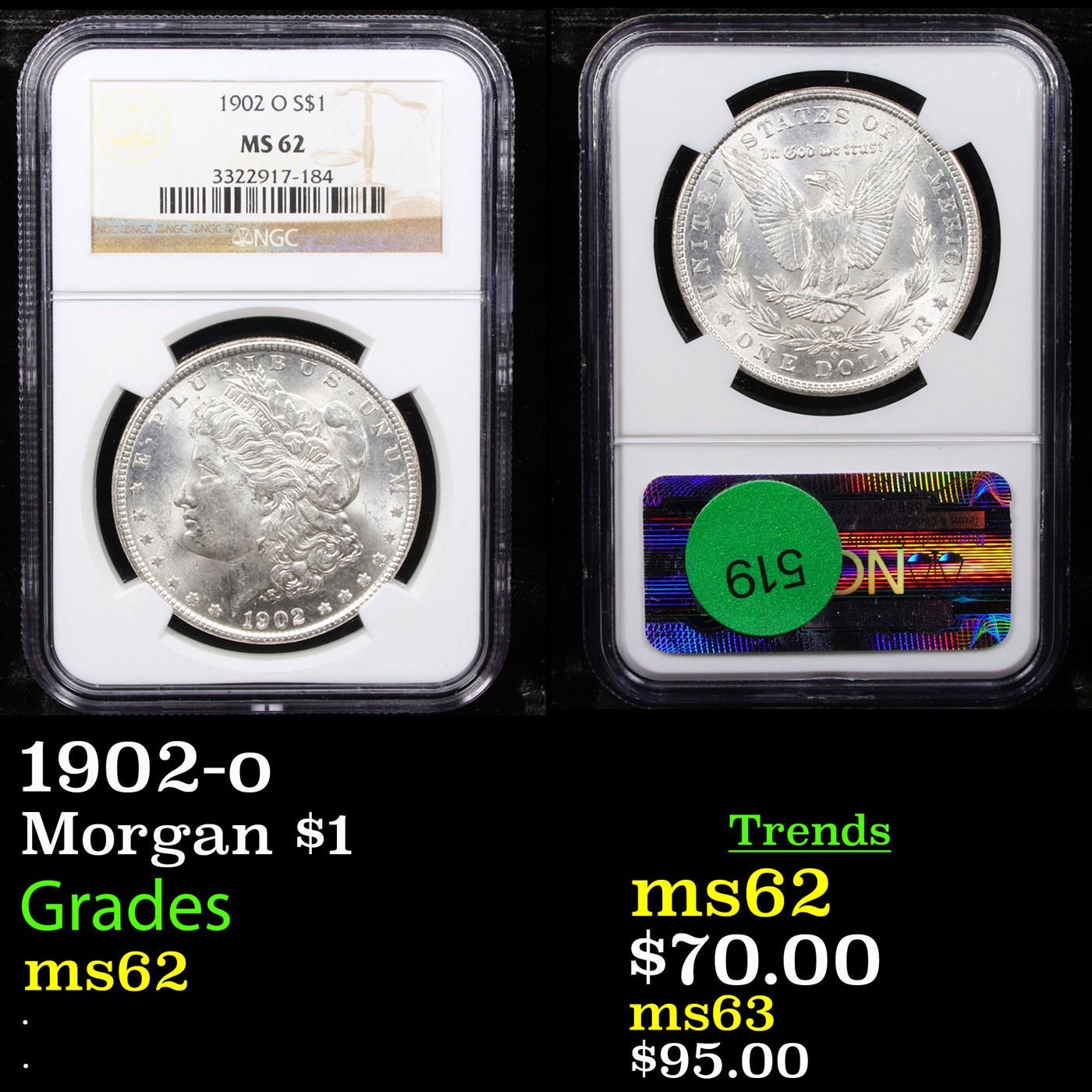 NGC 1902-o Morgan Dollar $1 Graded ms62 By NGC.