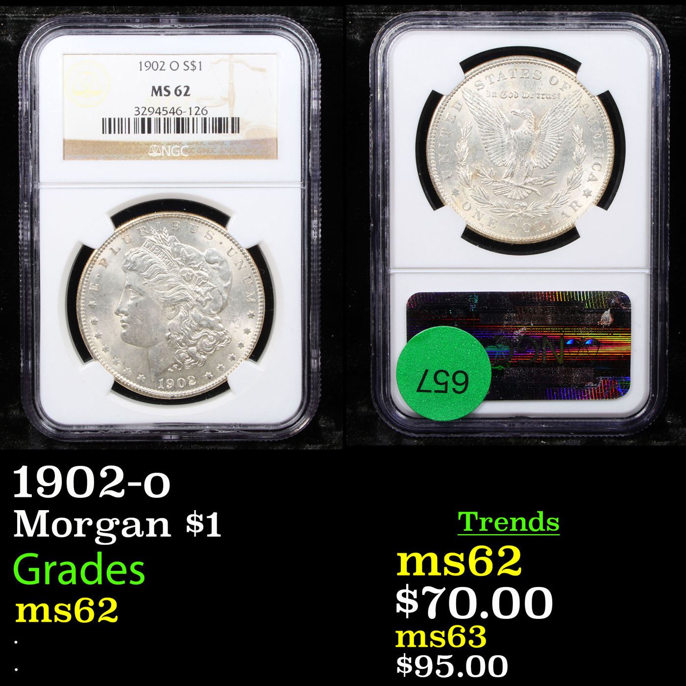 NGC 1902-o Morgan Dollar $1 Graded ms62 By NGC.