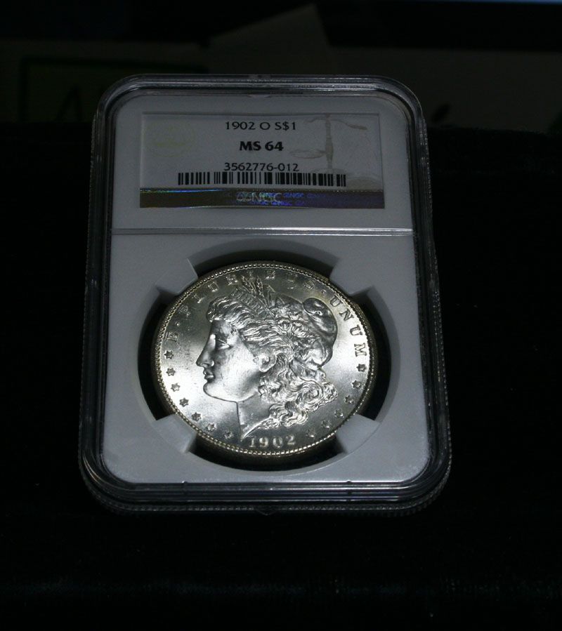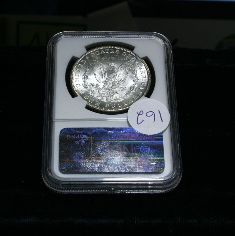 All Original with a touch of Golden Rim Toning. The Balance is Blast White. Great Luster and Eye Appeal. This example is 'beveled under the tail feathers". This 1902-o Morgan is Graded by NGC, One of America's Top 2 grading companies. NGC is a very stringent and harsher grader. Estimated Value $125