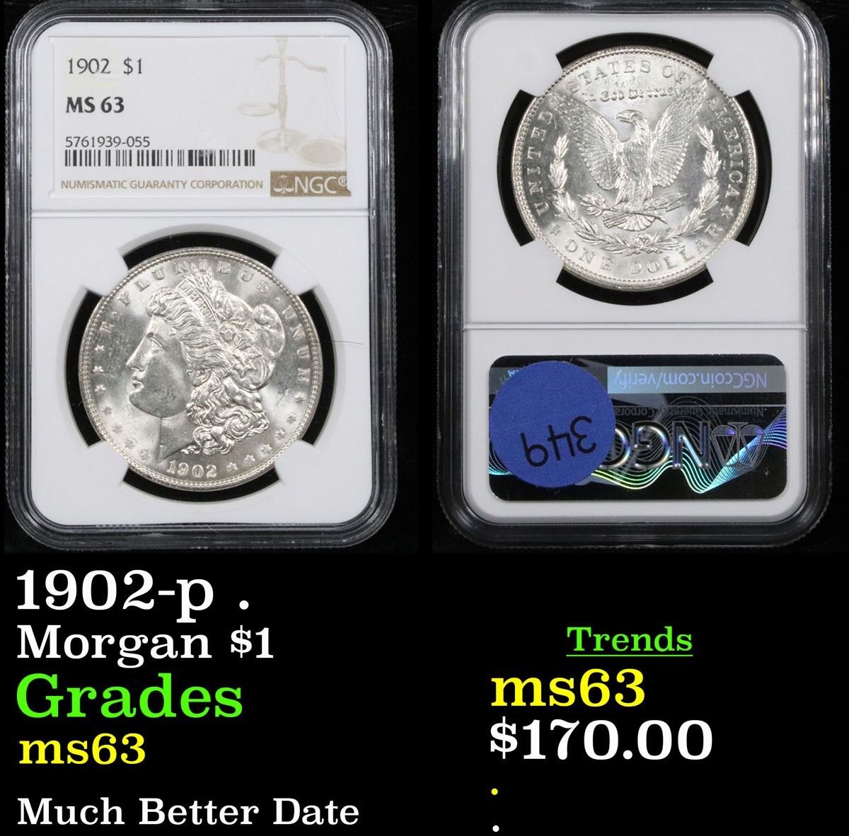 NGC 1902-p . Morgan Dollar $1 Graded ms63 By NGC.