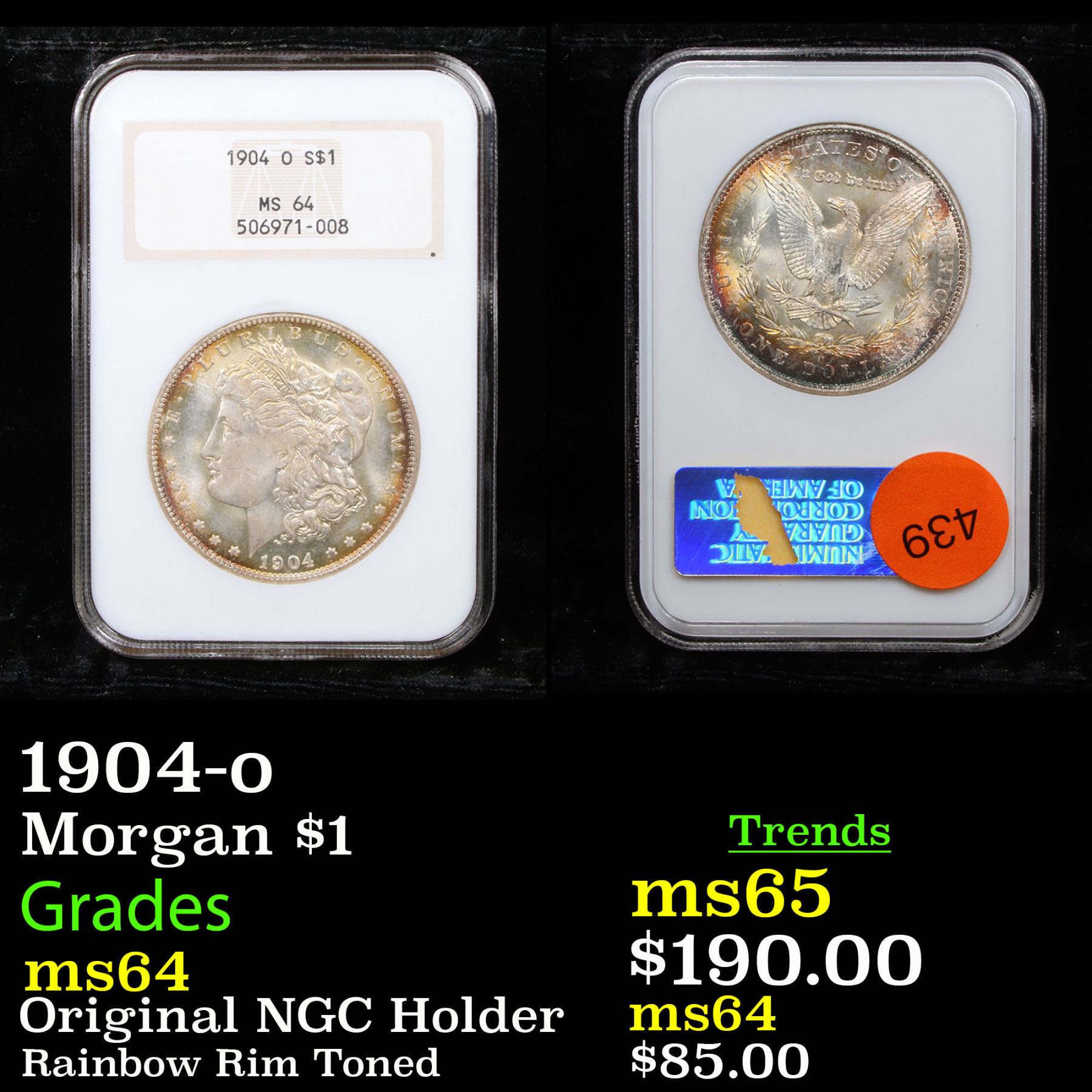NGC 1904-o Morgan Dollar $1 Graded ms64 By NGC.
