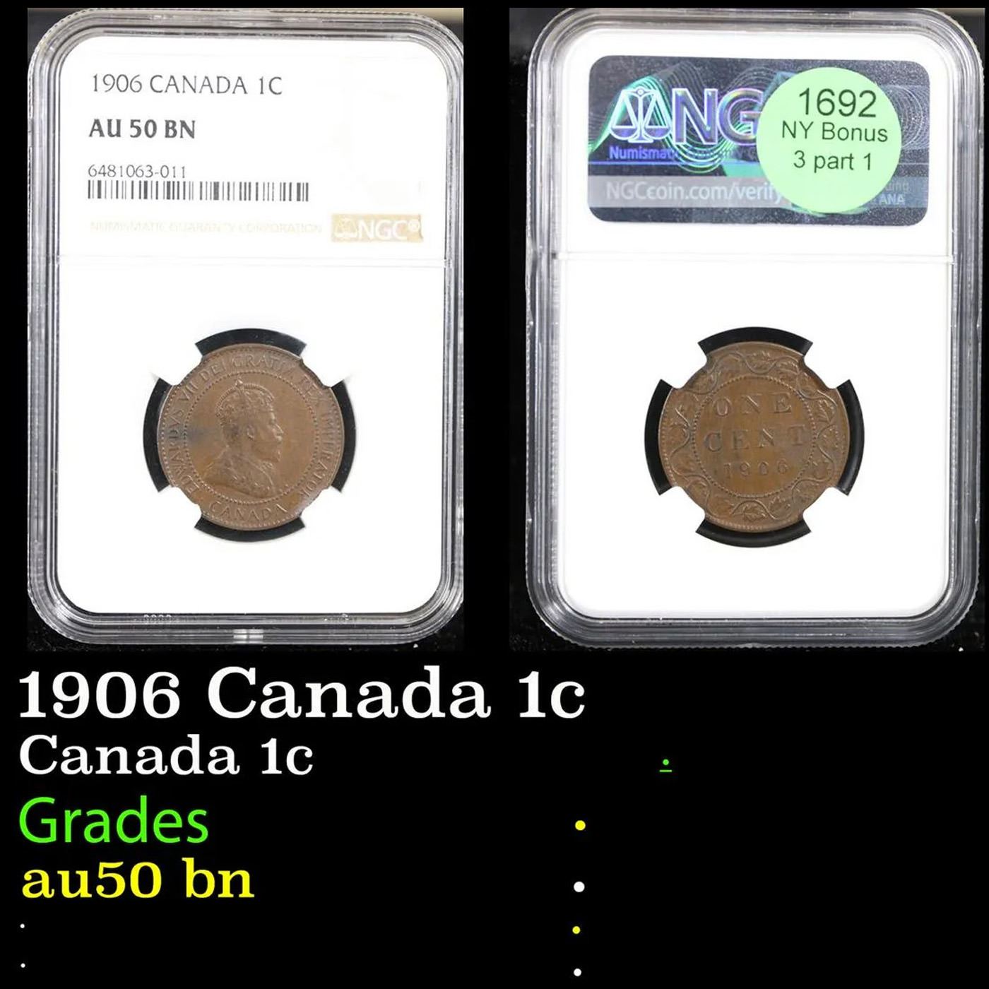 NGC 1906 Canada 1c Graded au50 bn By NGC.