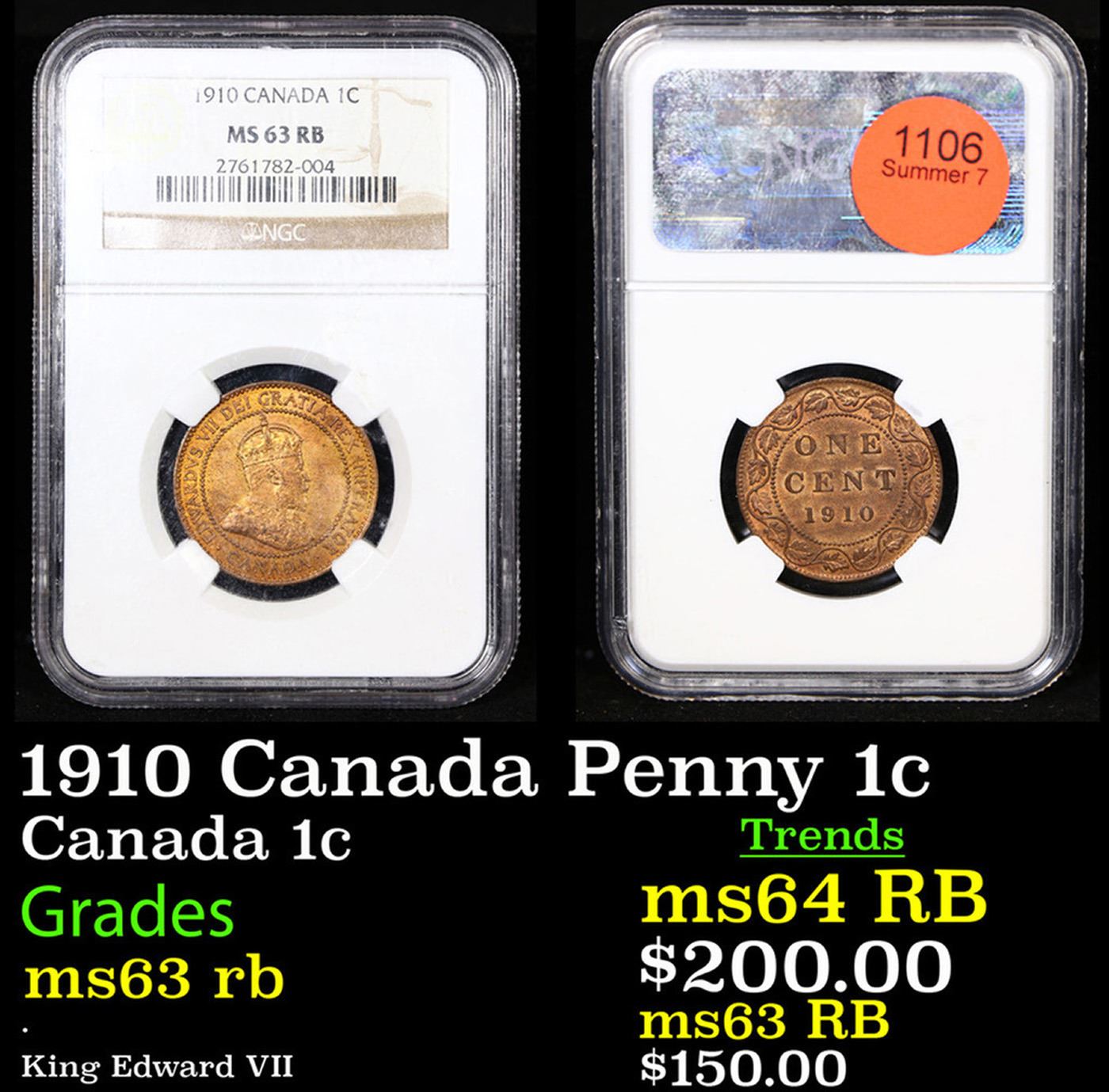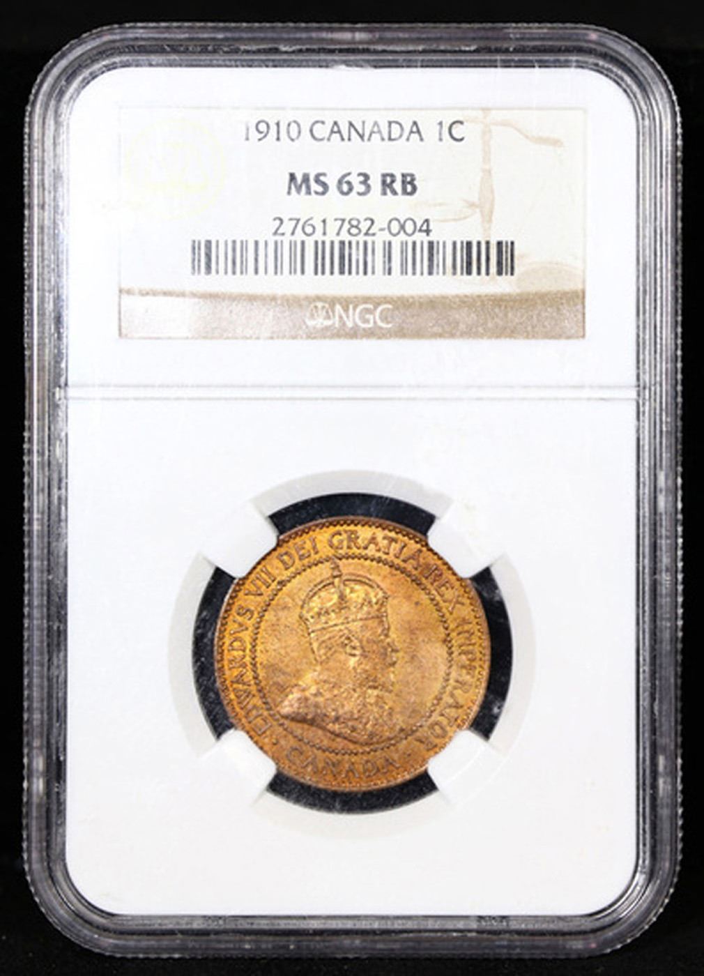 NGC 1910 Canada Penny 1c Graded ms63 rb By NGC.
