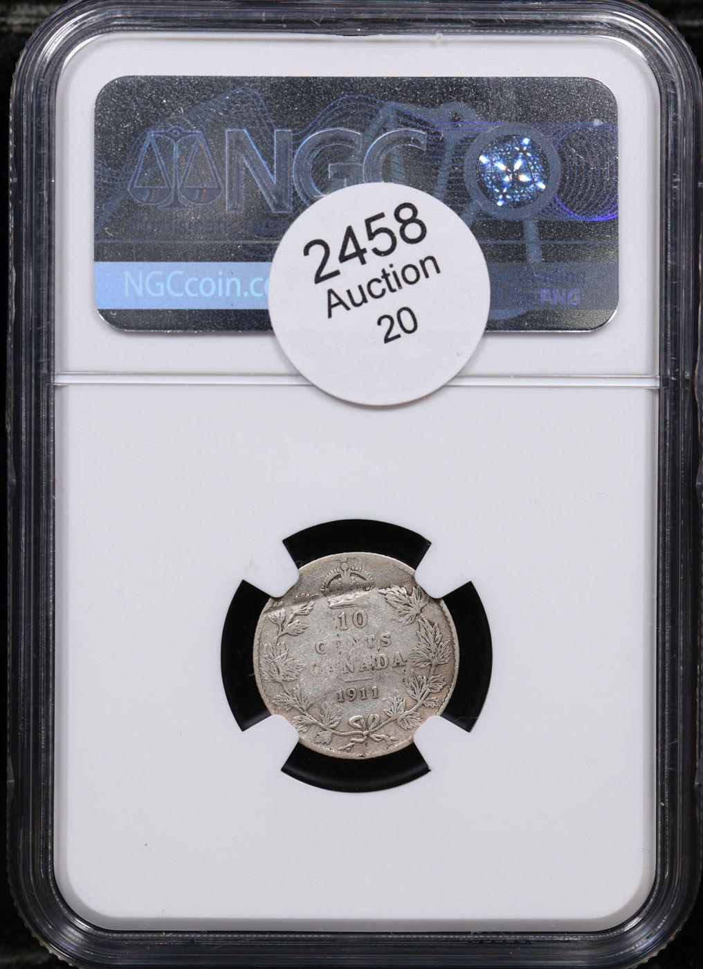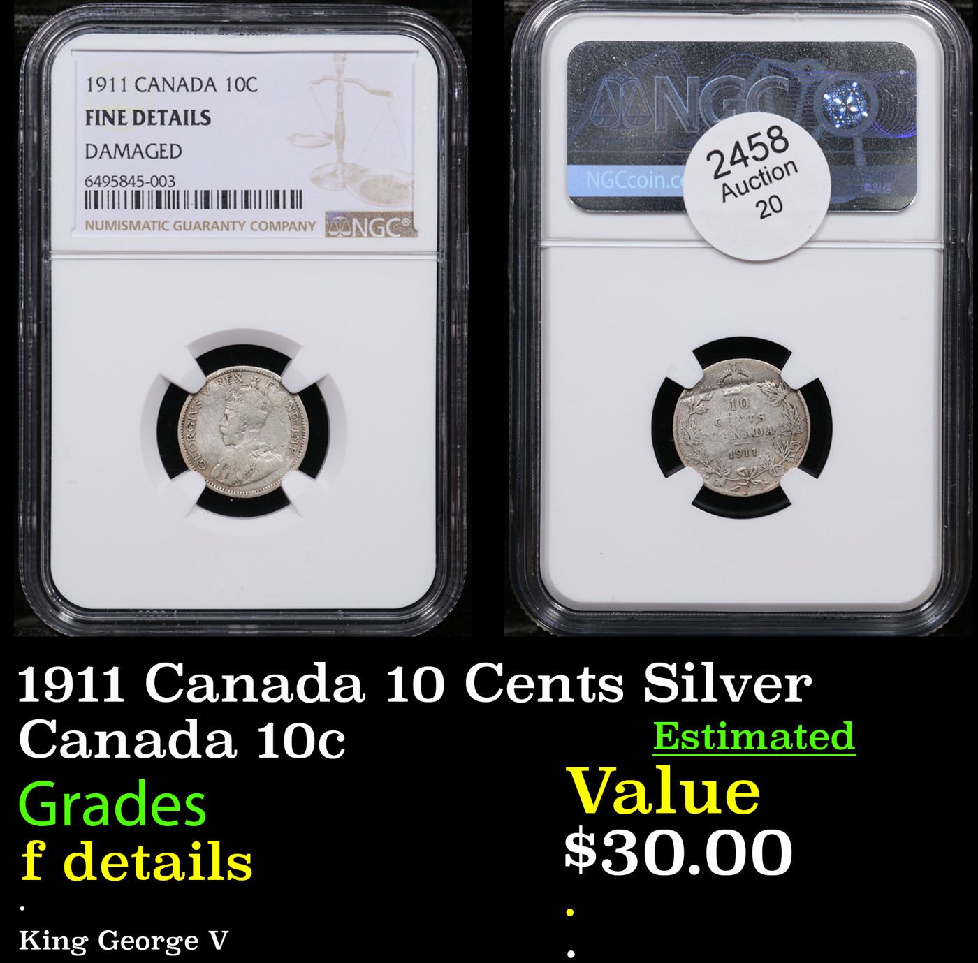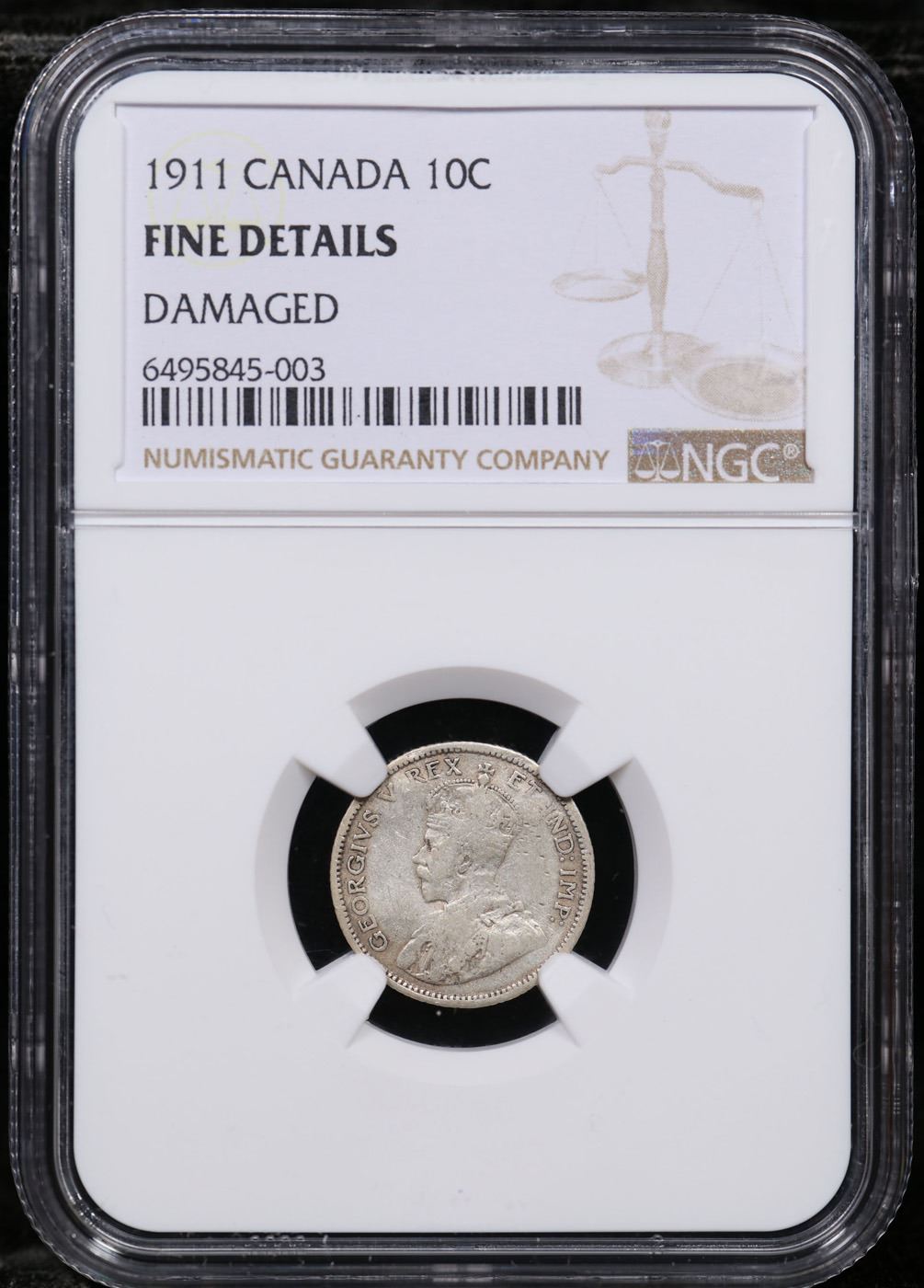 NGC 1911 Canada 10 Cents Silver Graded f details By NGC.