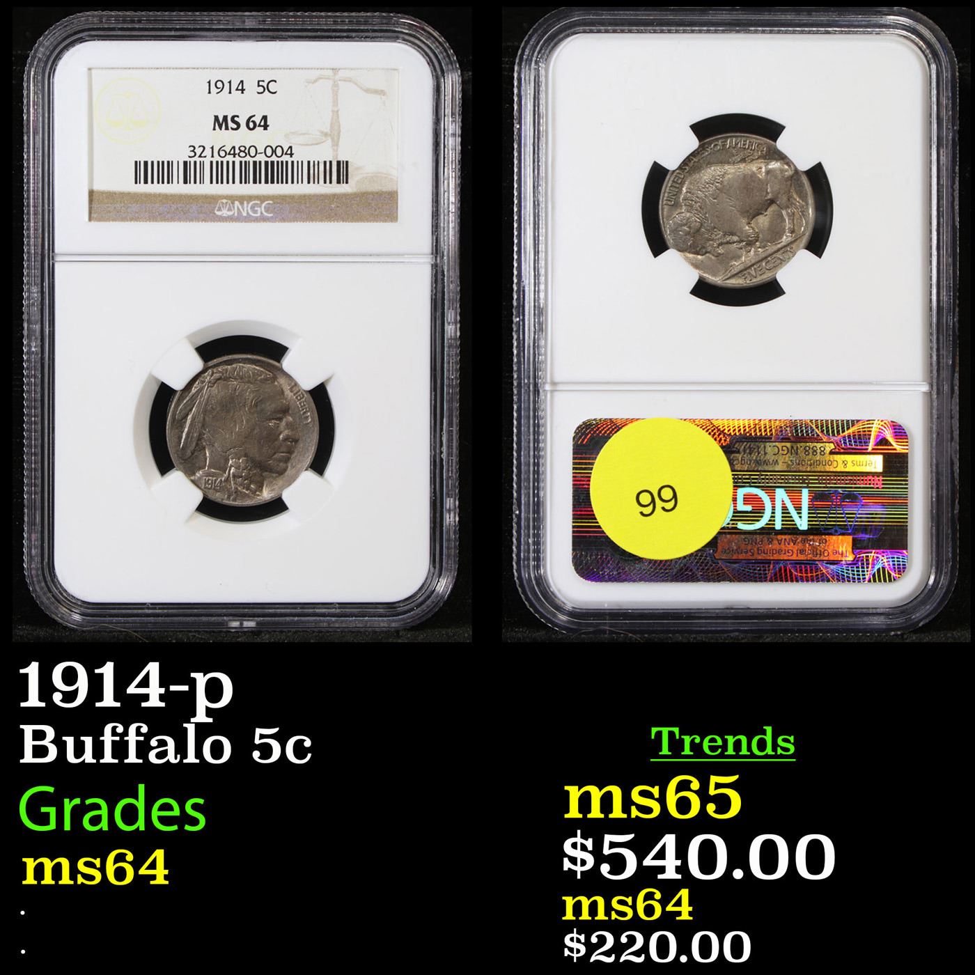 NGC 1914-p Buffalo Nickel 5c Graded ms64 By NGC.