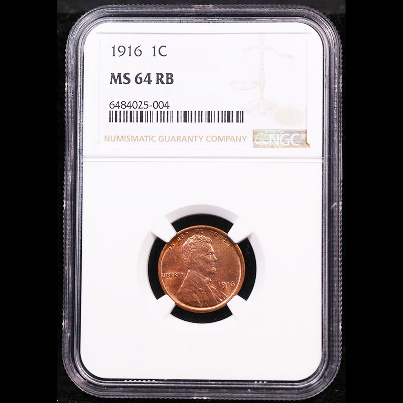 NGC 1916-p Lincoln Cent 1c Graded ms64 rb By NGC.