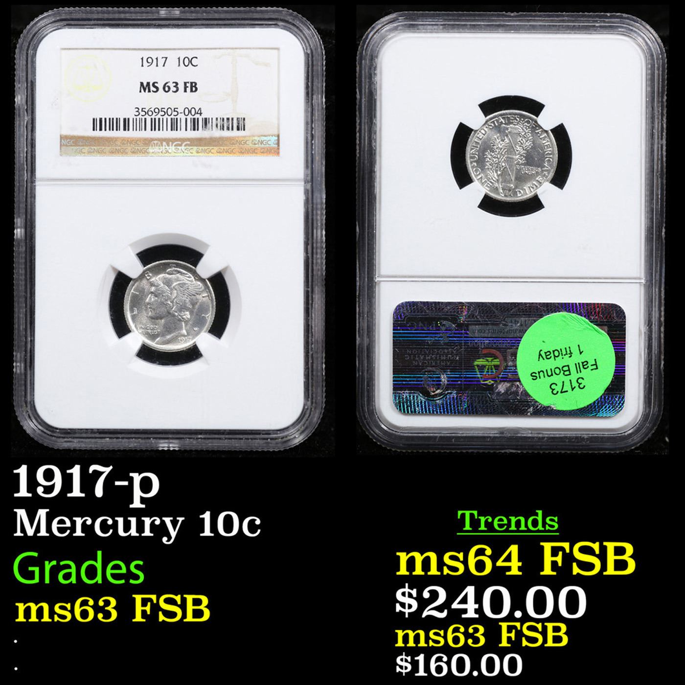NGC 1917-p Mercury Dime 10c Graded ms63 FSB BY NGC.