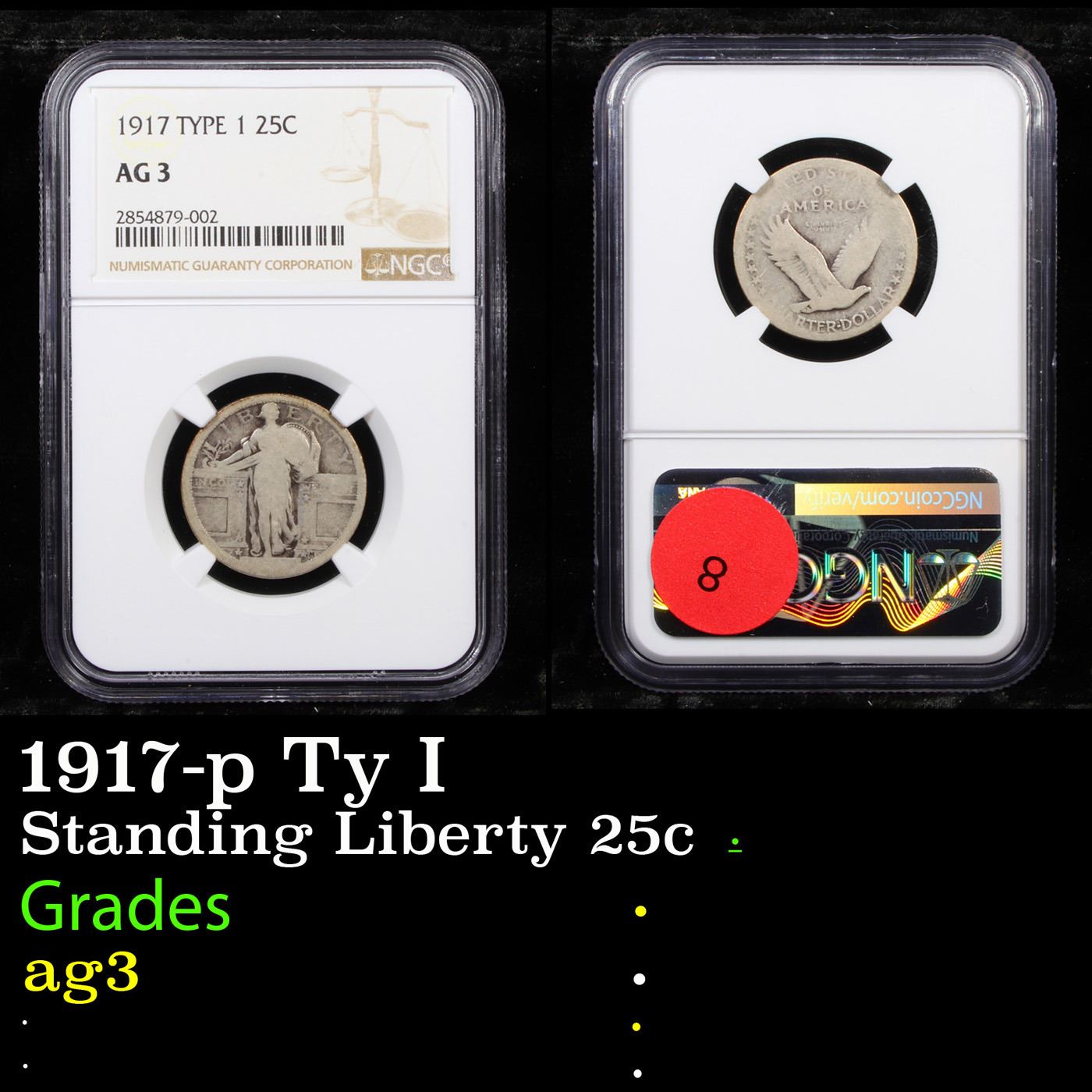 NGC 1917-p Ty I Standing Liberty Quarter 25c Graded ag3 By NGC.