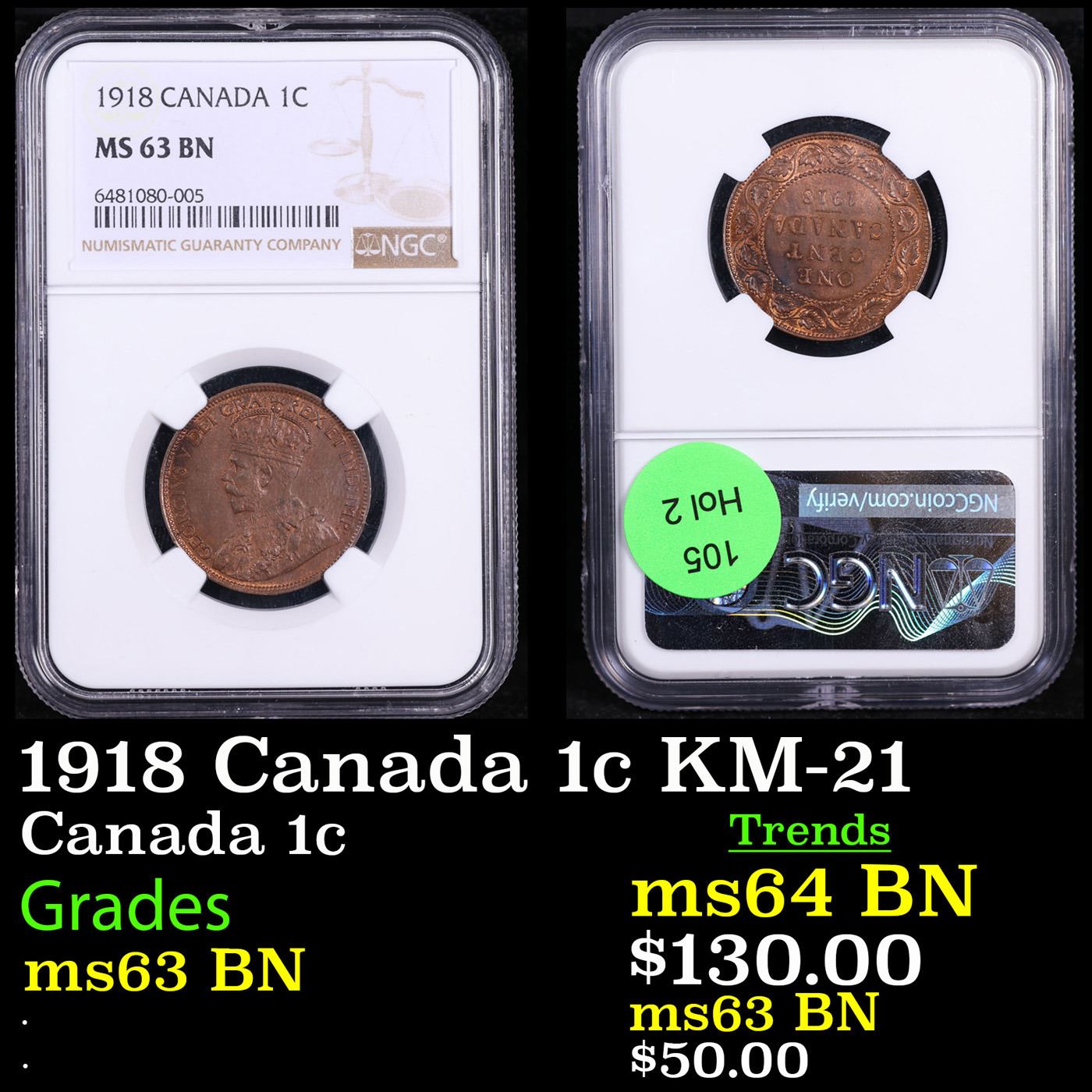 NGC 1918 Canada 1c KM-21 Graded ms63 BN By NGC.
