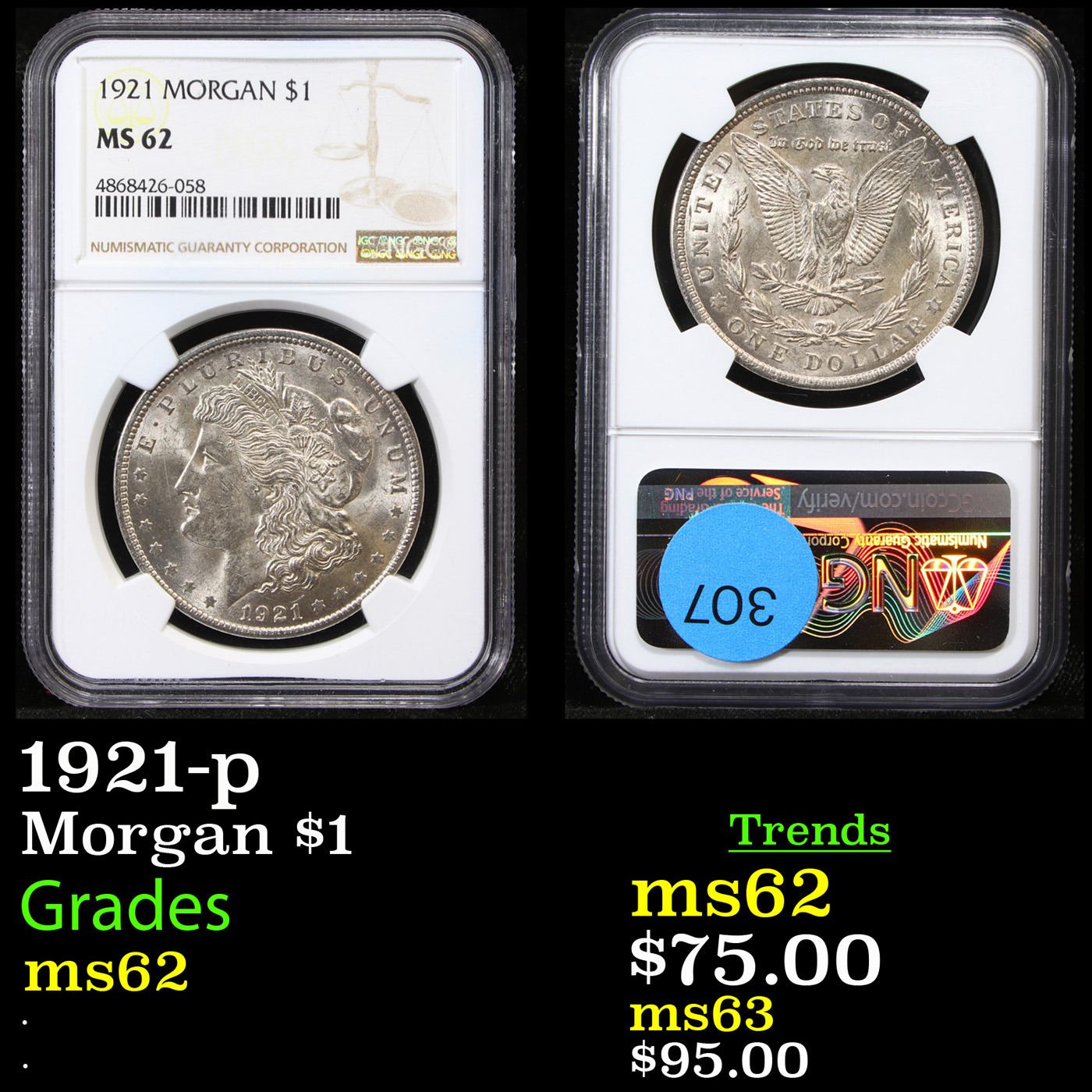 NGC 1921-p Morgan Dollar $1 Graded ms62 By NGC.