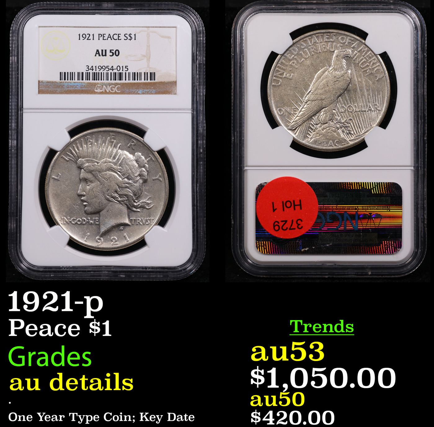 NGC 1921-p Peace Dollar $1 Graded au details By NGC.
