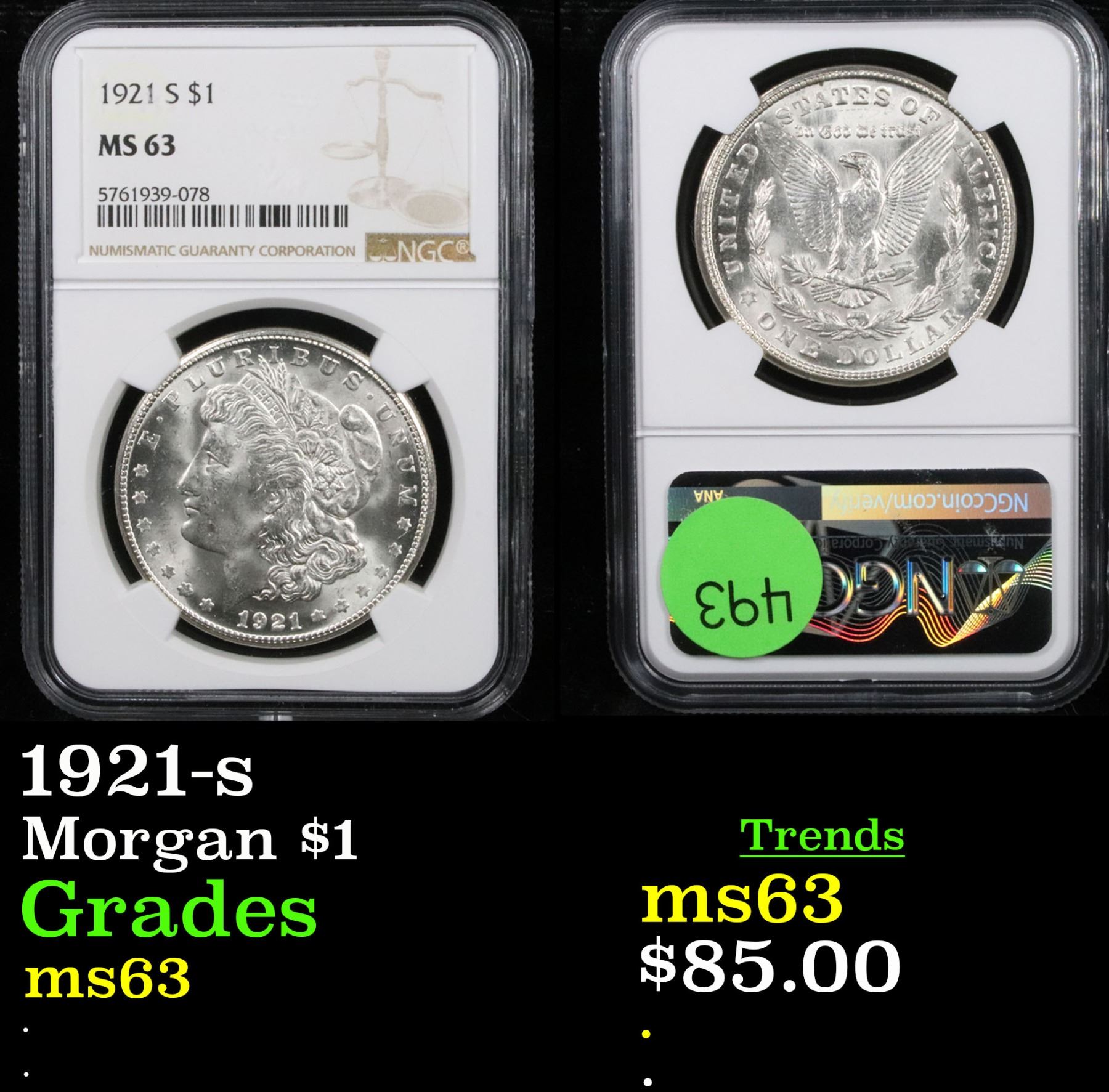 NGC 1921-s Morgan Dollar $1 Graded ms63 By NGC.