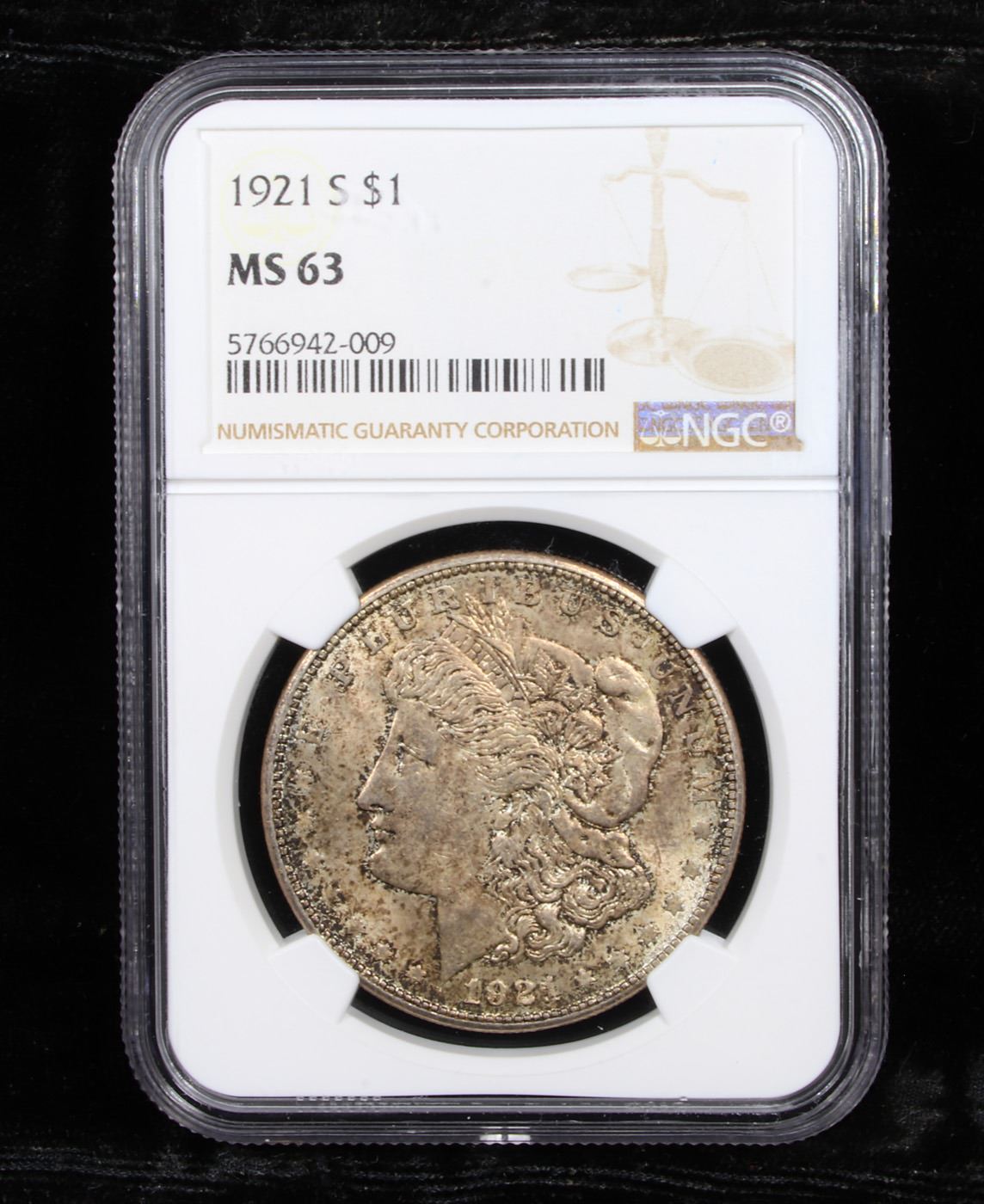 NGC 1921-s Morgan Dollar $1 Graded ms63 By NGC.