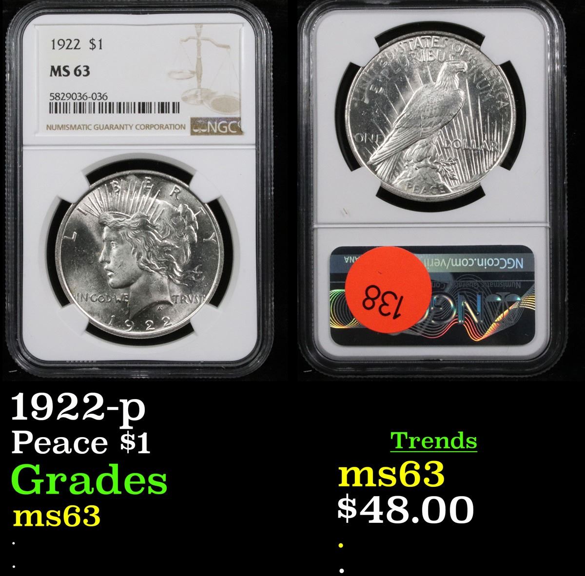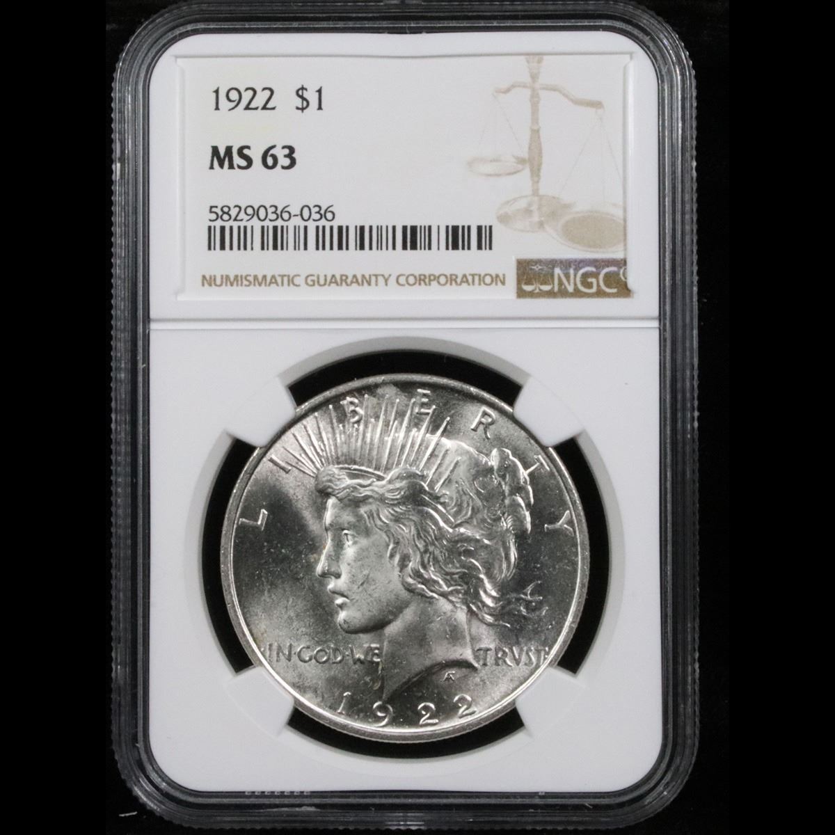 NGC 1922-p Peace Dollar $1 Graded ms63 By NGC.