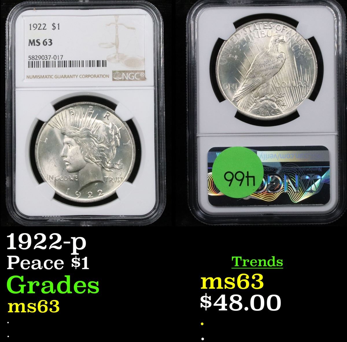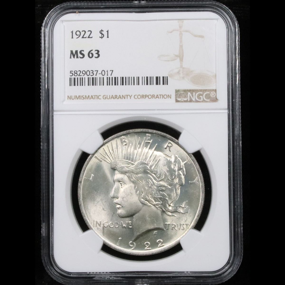 NGC 1922-p Peace Dollar $1 Graded ms63 By NGC.