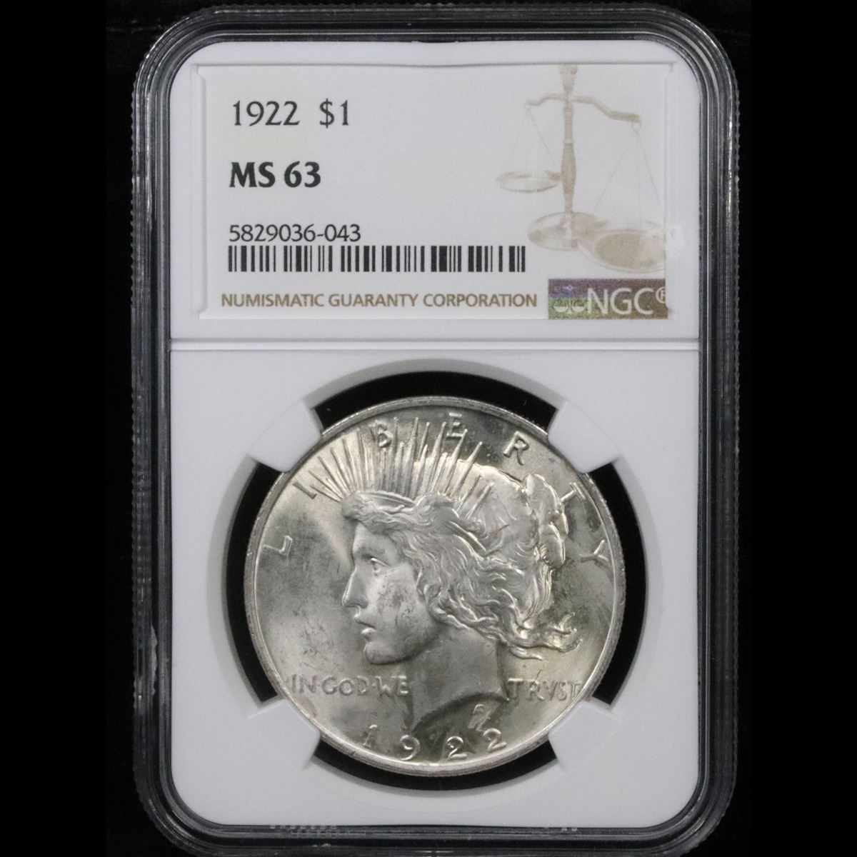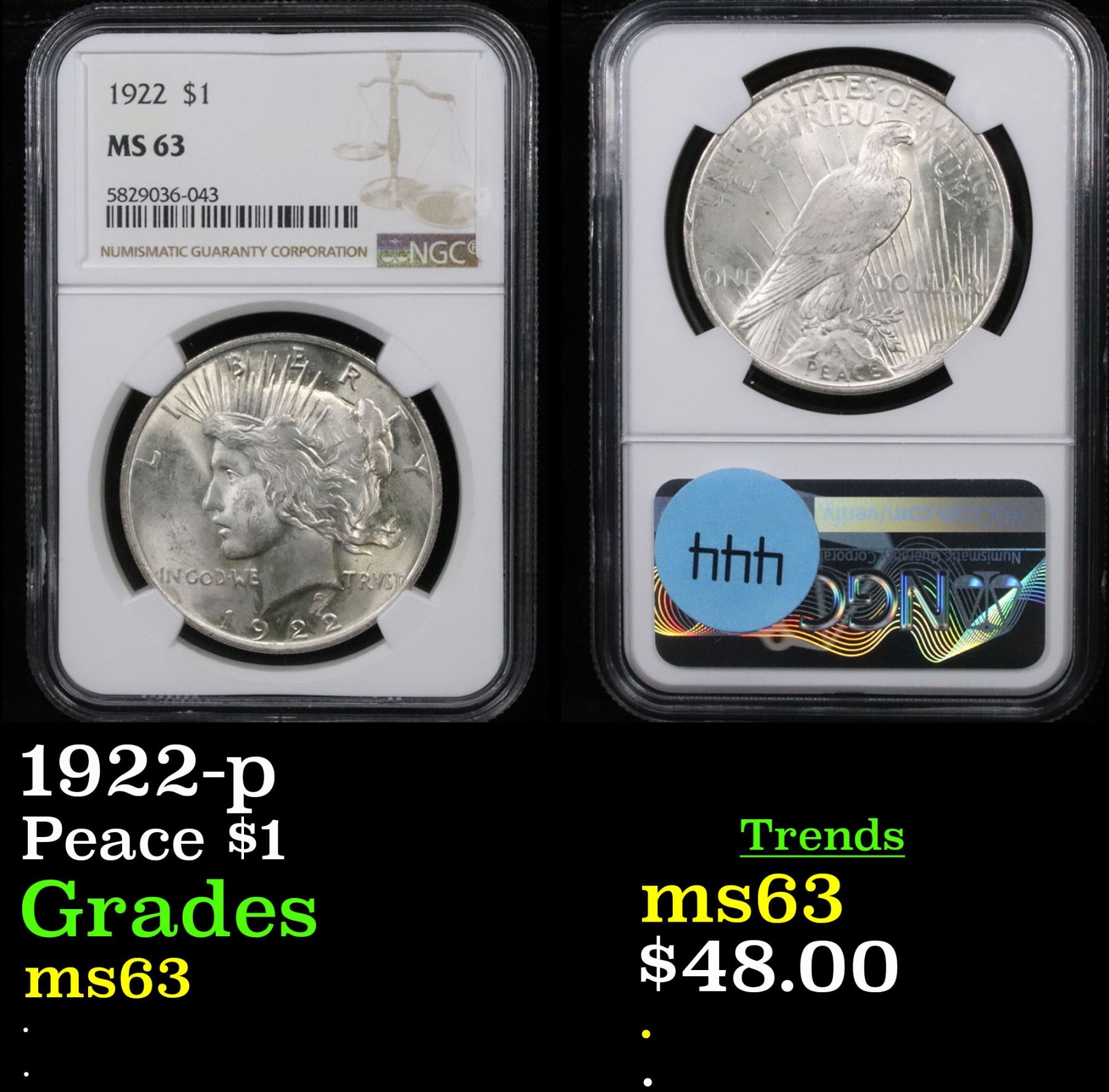 NGC 1922-p Peace Dollar $1 Graded ms63 By NGC.