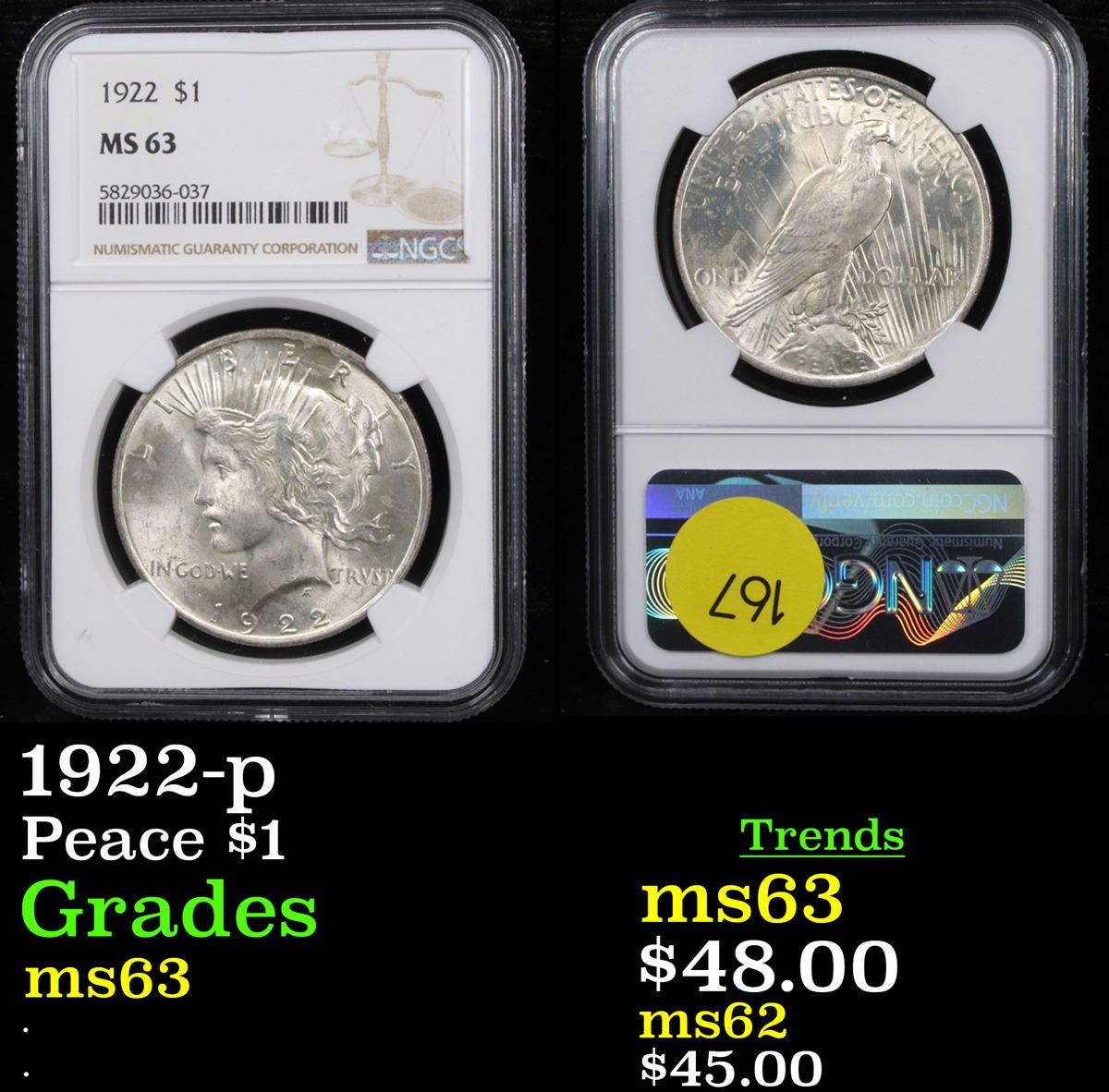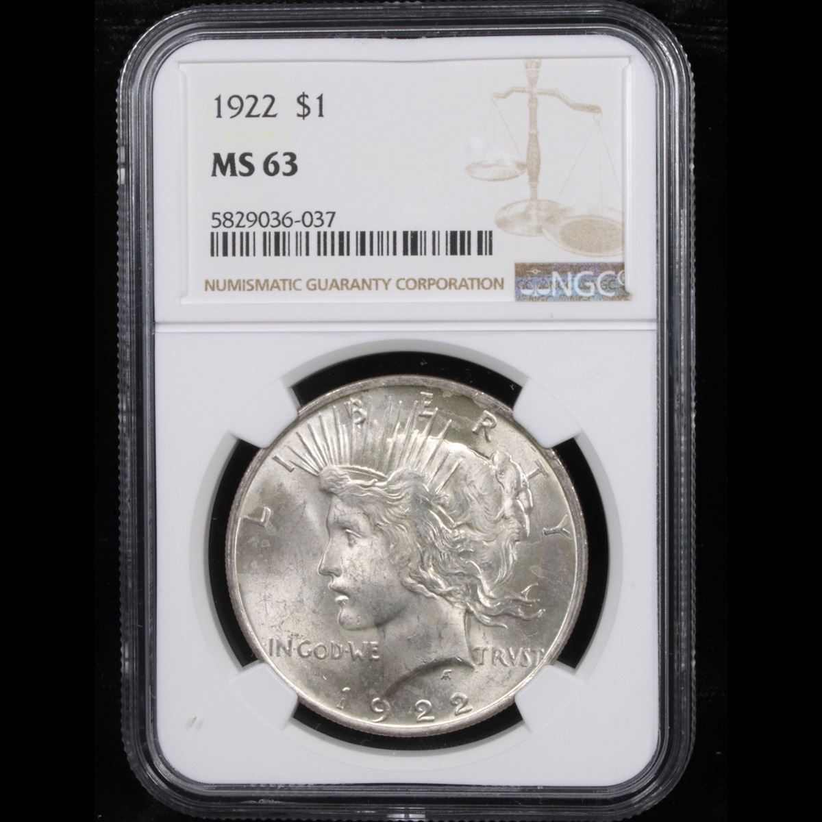 NGC 1922-p Peace Dollar $1 Graded ms63 By NGC.