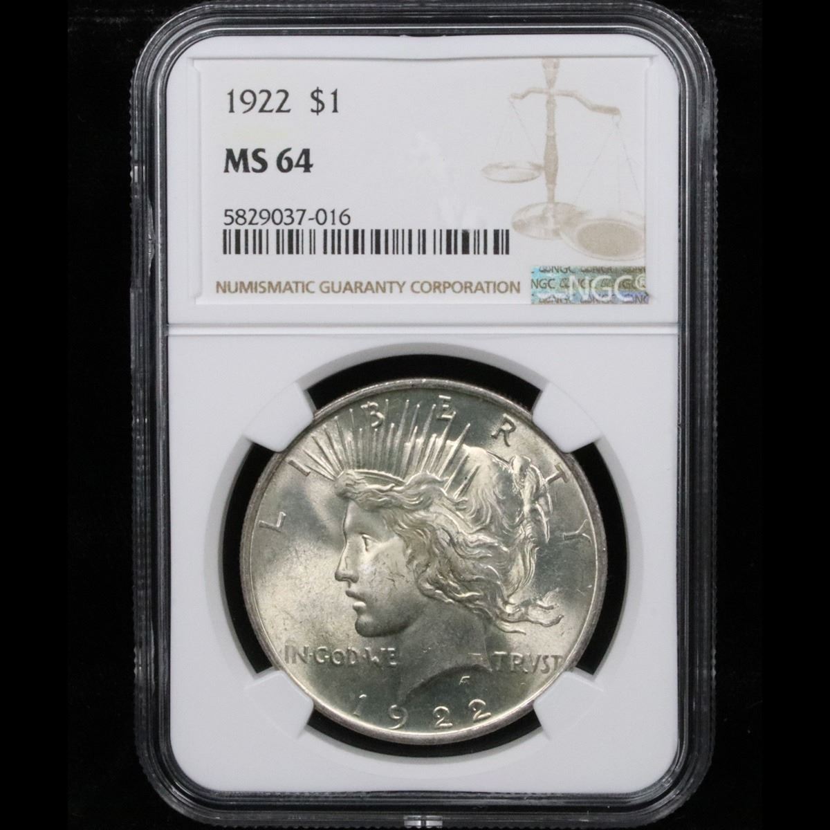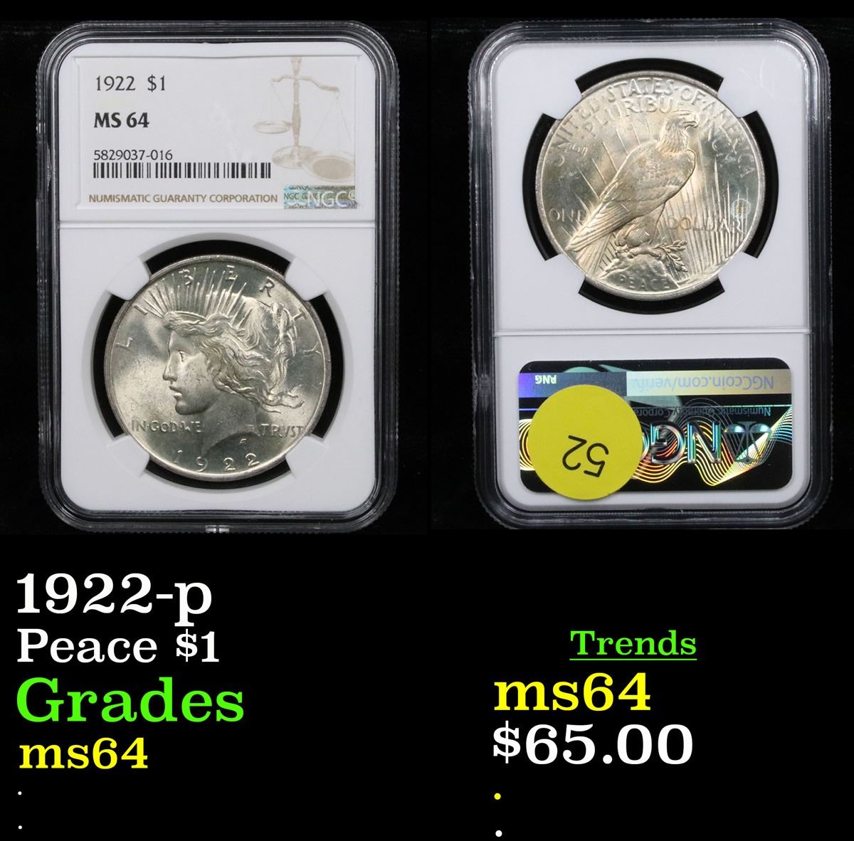 NGC 1922-p Peace Dollar $1 Graded ms64 By NGC.