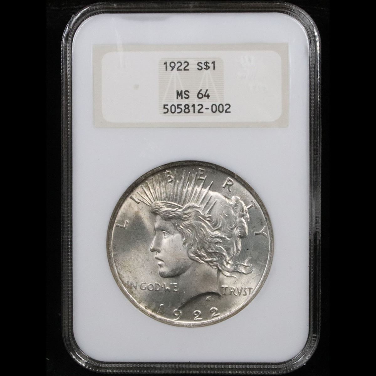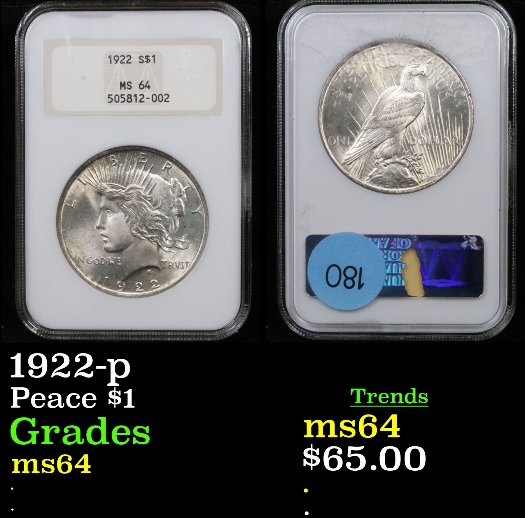 NGC 1922-p Peace Dollar $1 Graded ms64 By NGC.