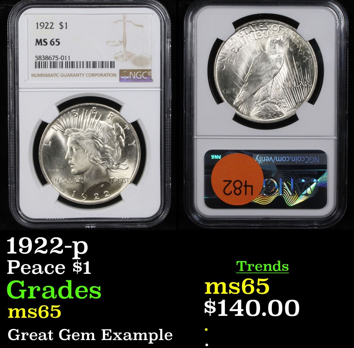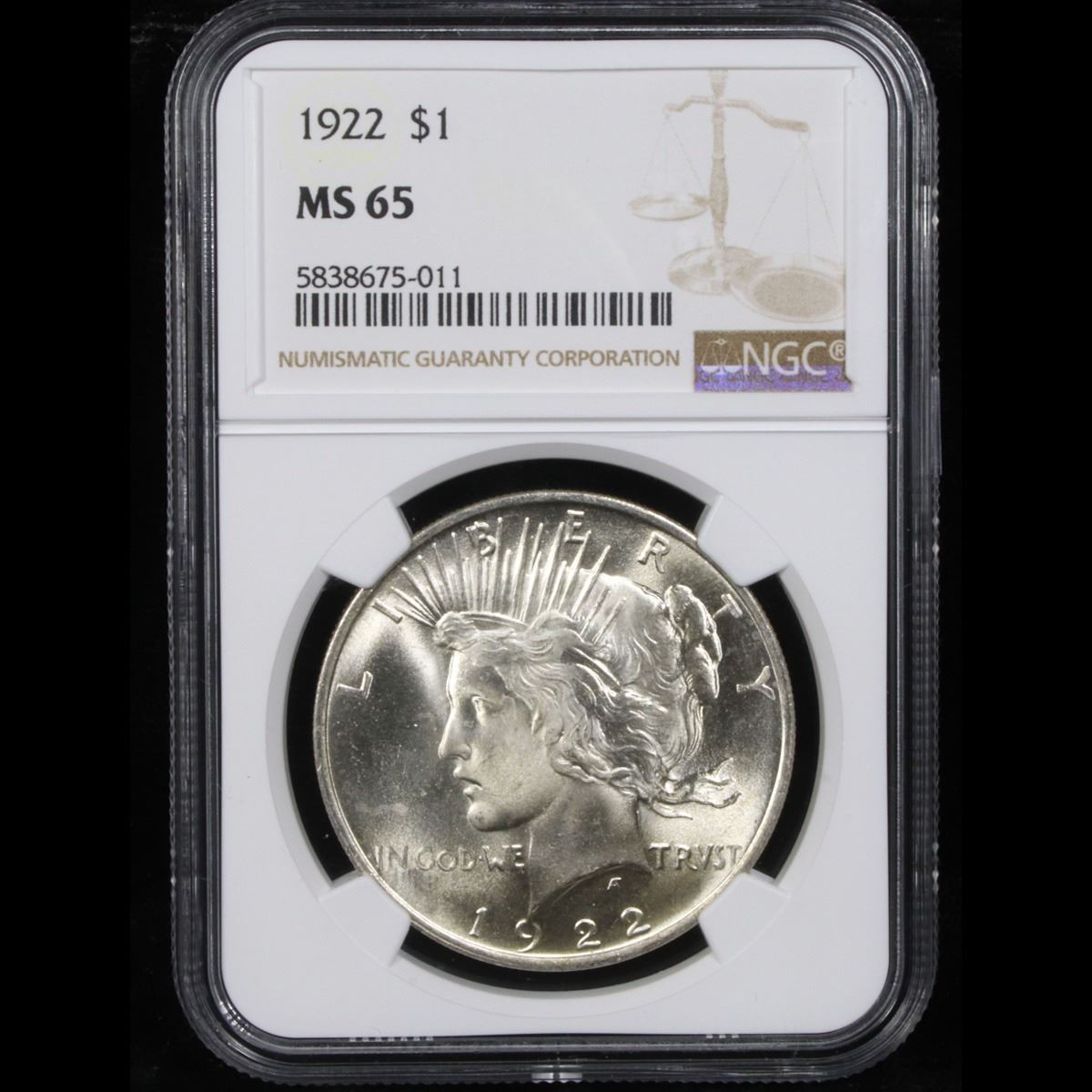 NGC 1922-p Peace Dollar $1 Graded ms65 By NGC.