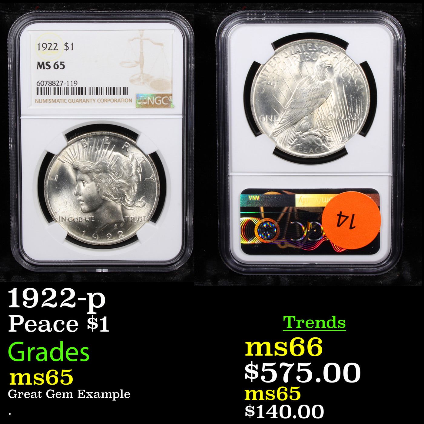 NGC 1922-p Peace Dollar $1 Graded ms65 By NGC.