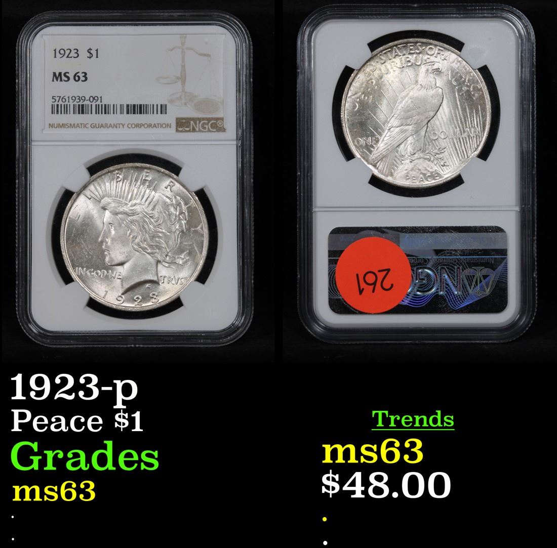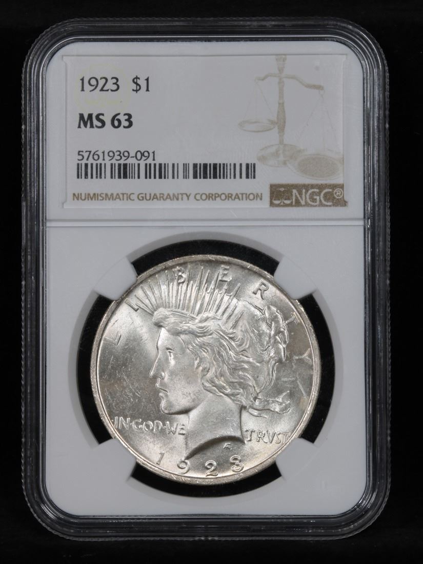 NGC 1923-p . . Peace Dollar $1 Graded ms63 By NGC.