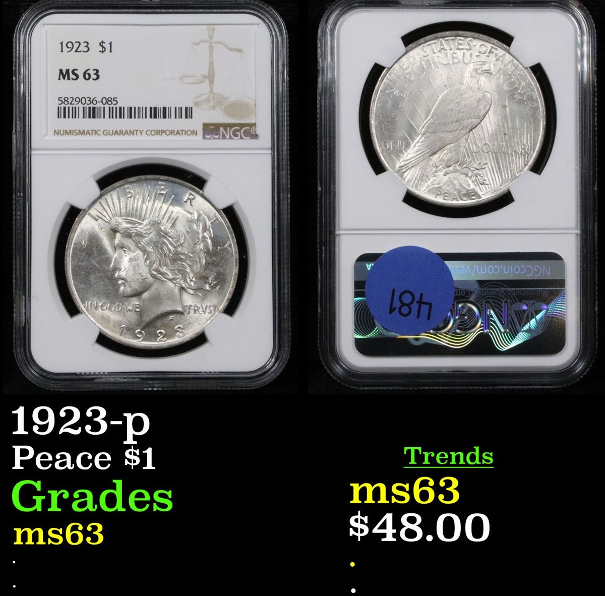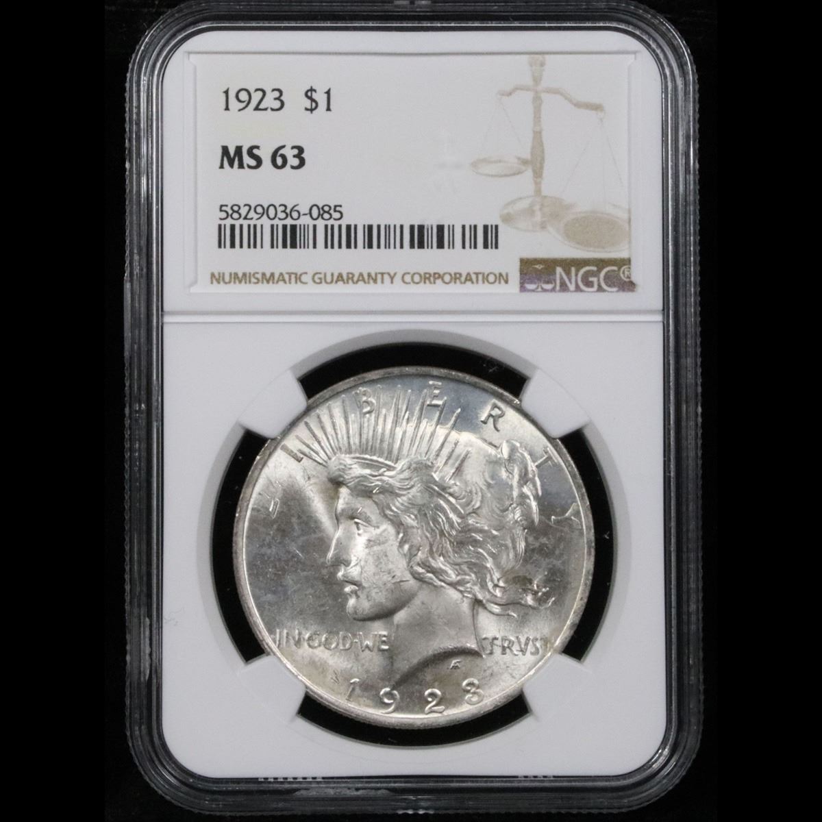 NGC 1923-p Peace Dollar $1 Graded ms63 By NGC.