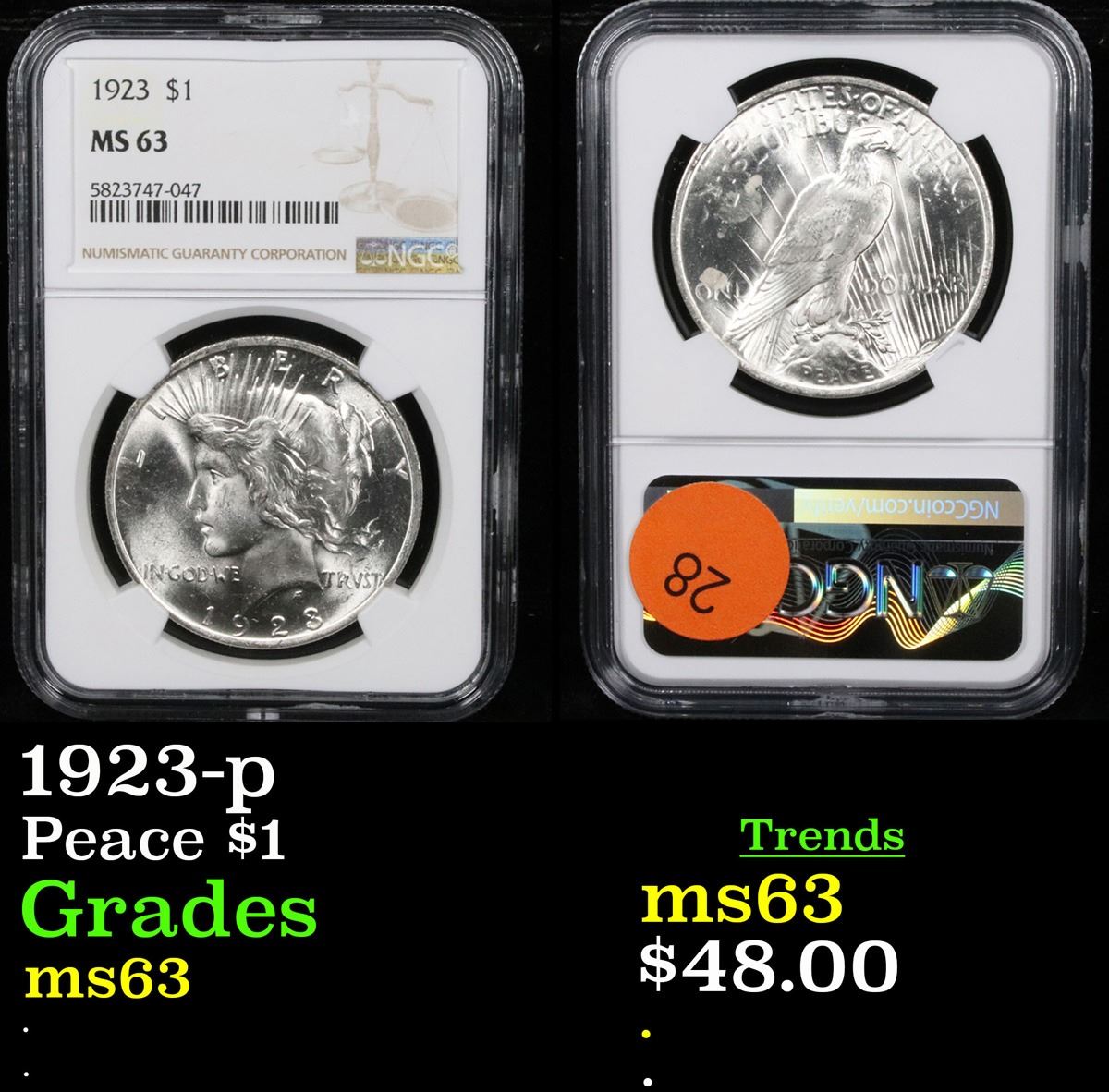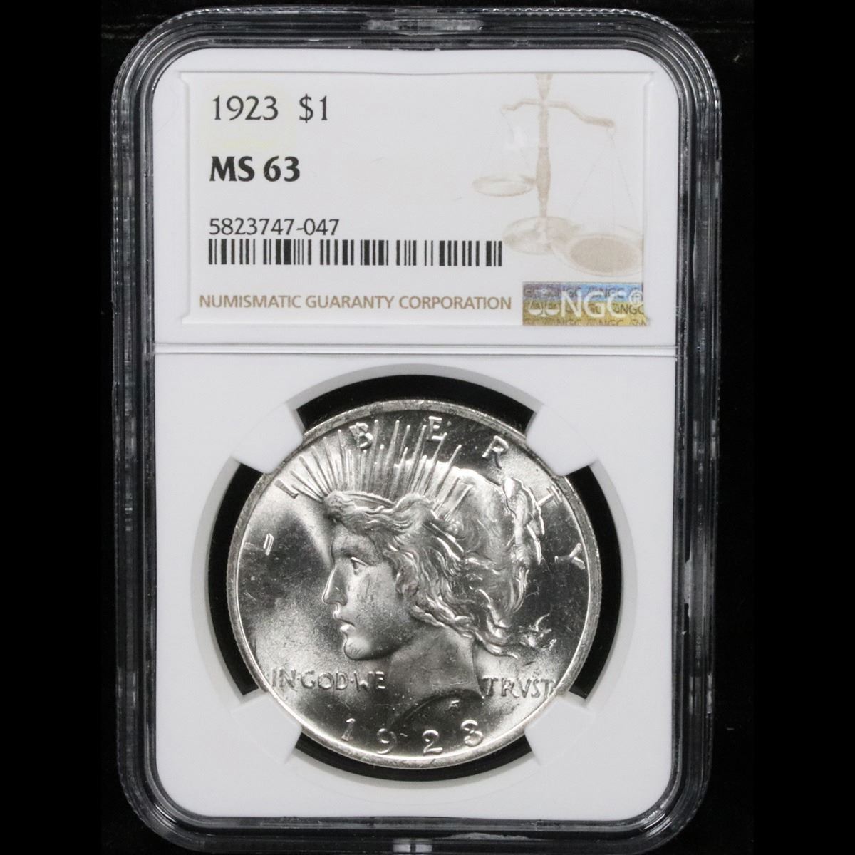 NGC 1923-p Peace Dollar $1 Graded ms63 By NGC.