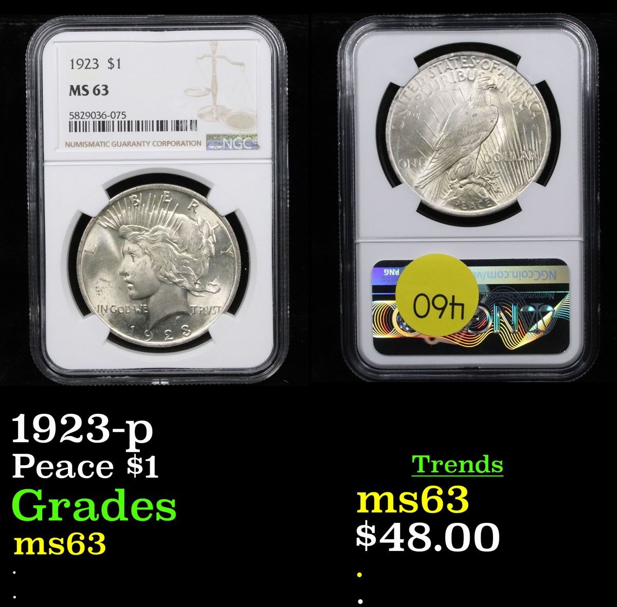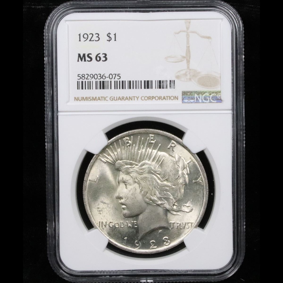 NGC 1923-p Peace Dollar $1 Graded ms63 By NGC.
